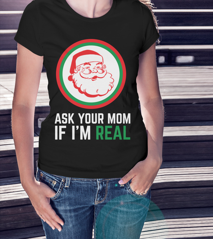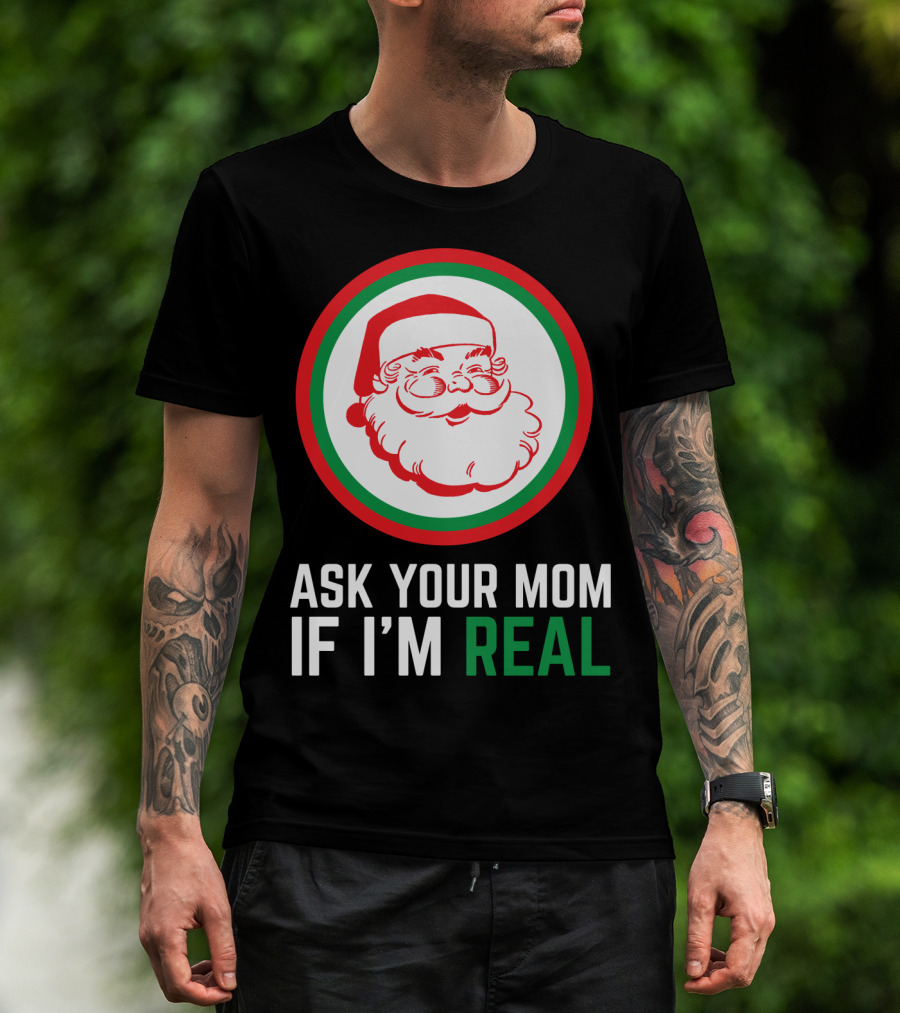 ASK YOUR MOM IF I'M REAL SANTA CLAUS RED GREEN CIRCLE T-Shirt