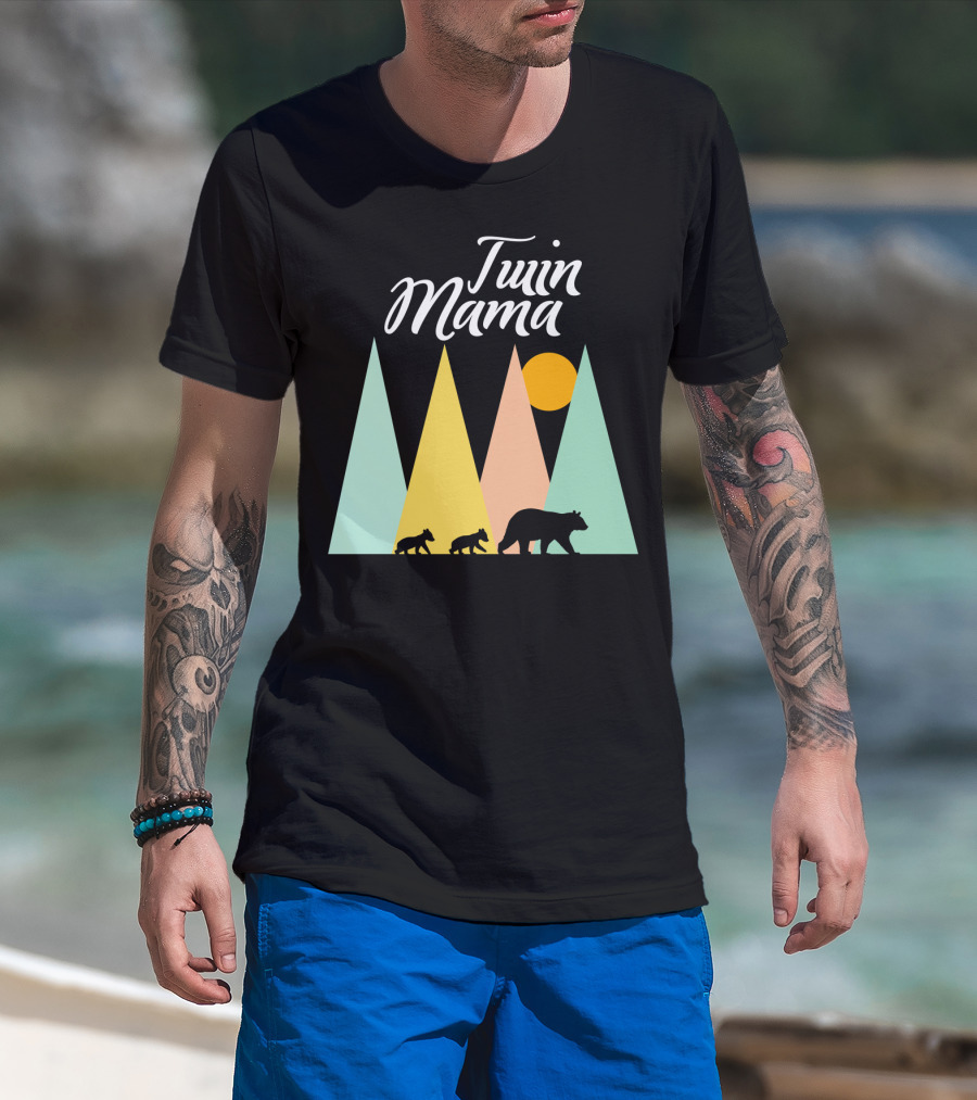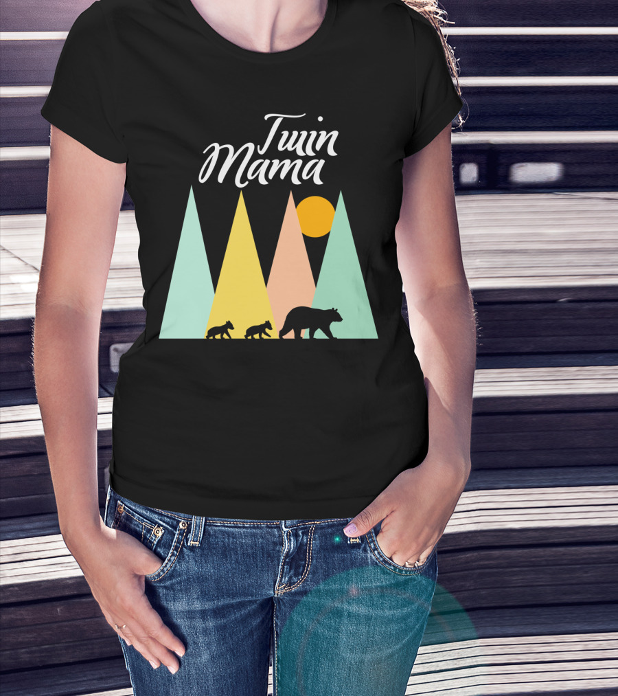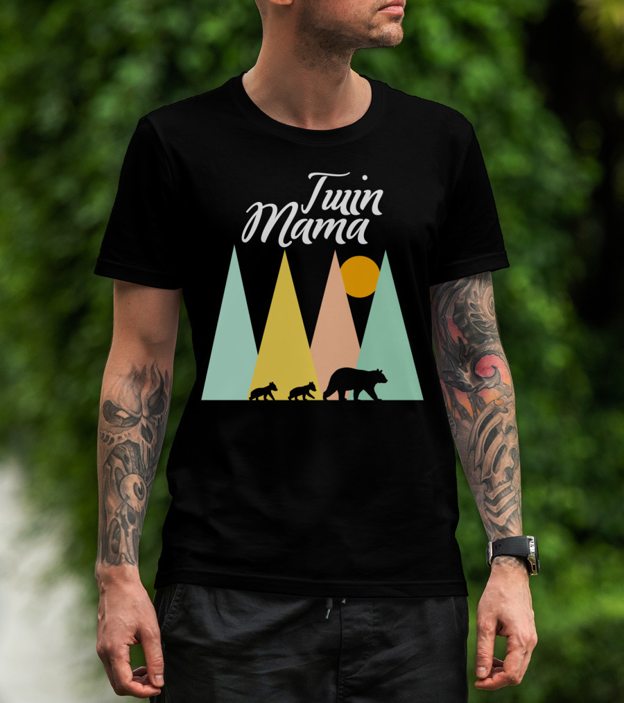 Twin Mama Bear Camping With Cubs In Forest T-Shirt