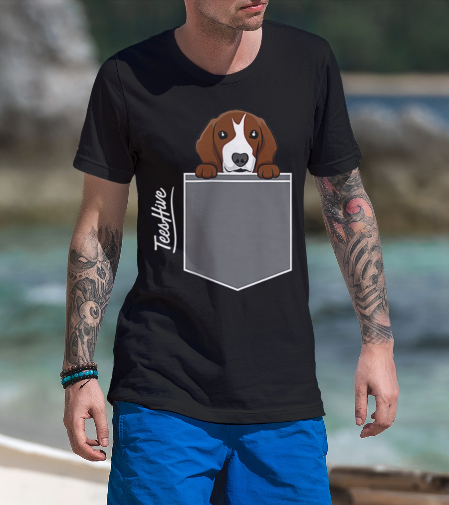 The Beagle Pocket Beagle Dog TeesHive Beagle Mom Funny Beagle Lover T-shirt is designed for everyday wear and a consistent fit. Fabric is pre-shrunk ring-spun cotton with durable stitching. See the size chart below for exact measurements.