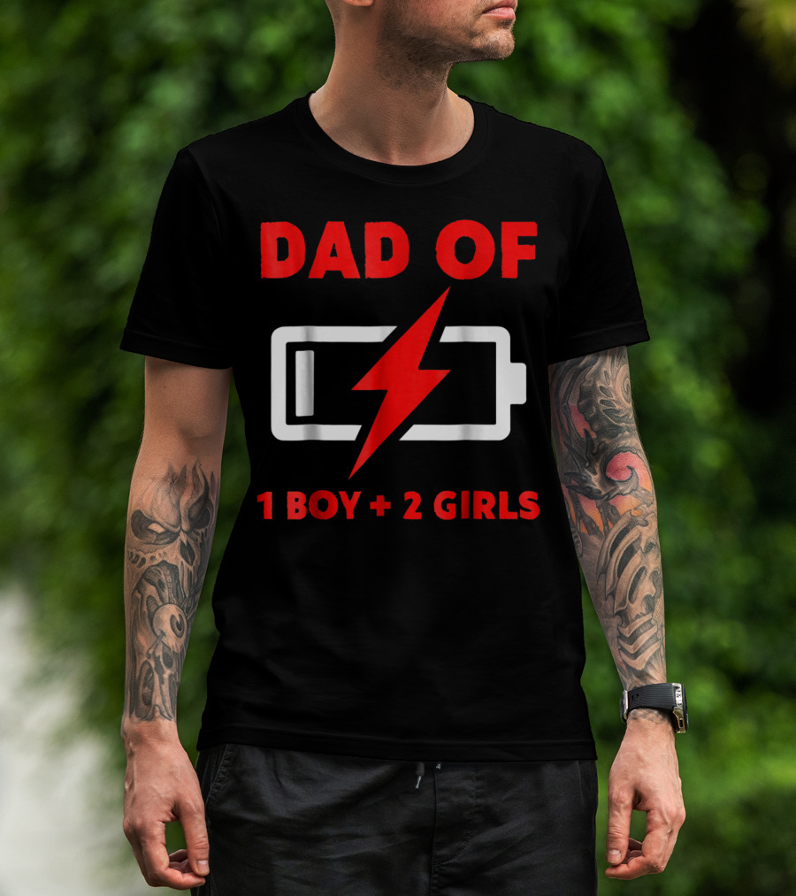Dad Of 1 Boy 2 Girls Low Battery Symbol Father's Day T-Shirt