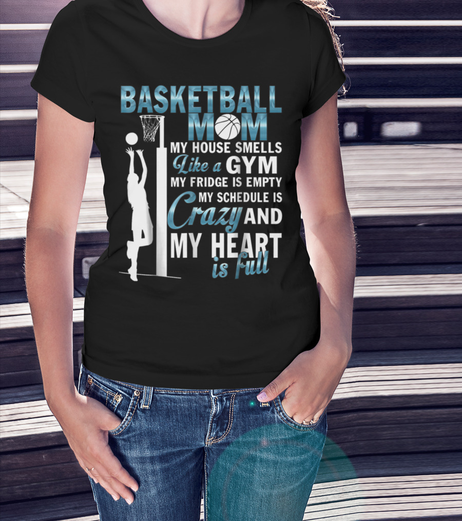 Basketball Mom My House Smells Like A Gym My Fridge Is Empty My Schedule Is Crazy And My Heart Is Full T-Shirt