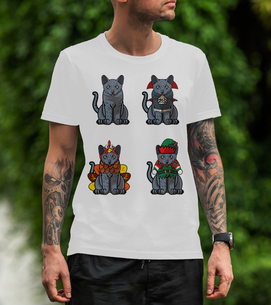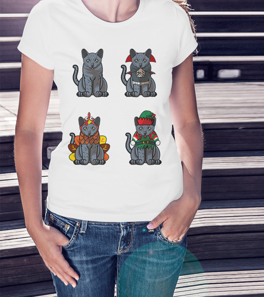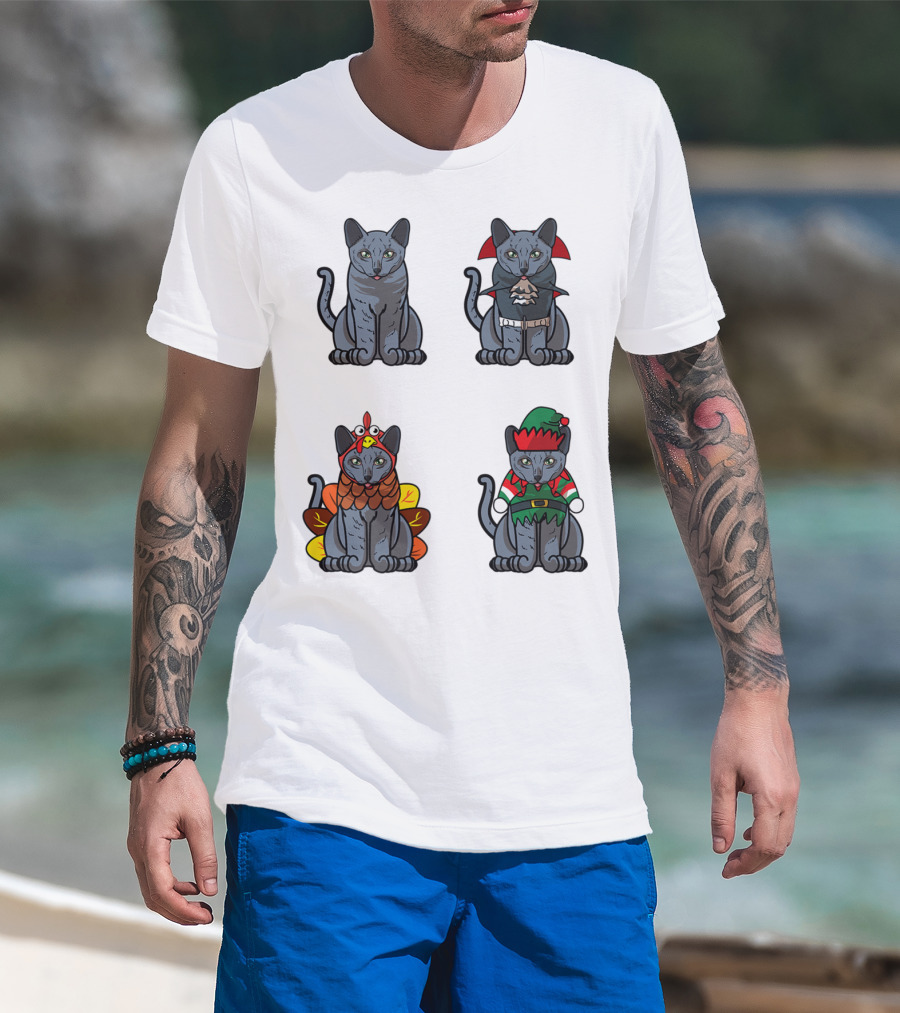 Blue Cat Halloween Thanksgiving Christmas Costumes T-Shirt