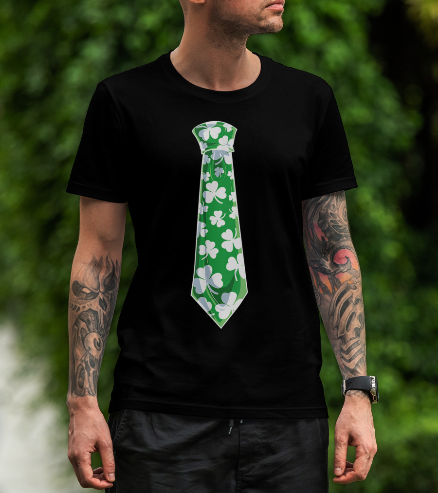 St Patricks Day Green Shamrock Tie Boys Men T-Shirt