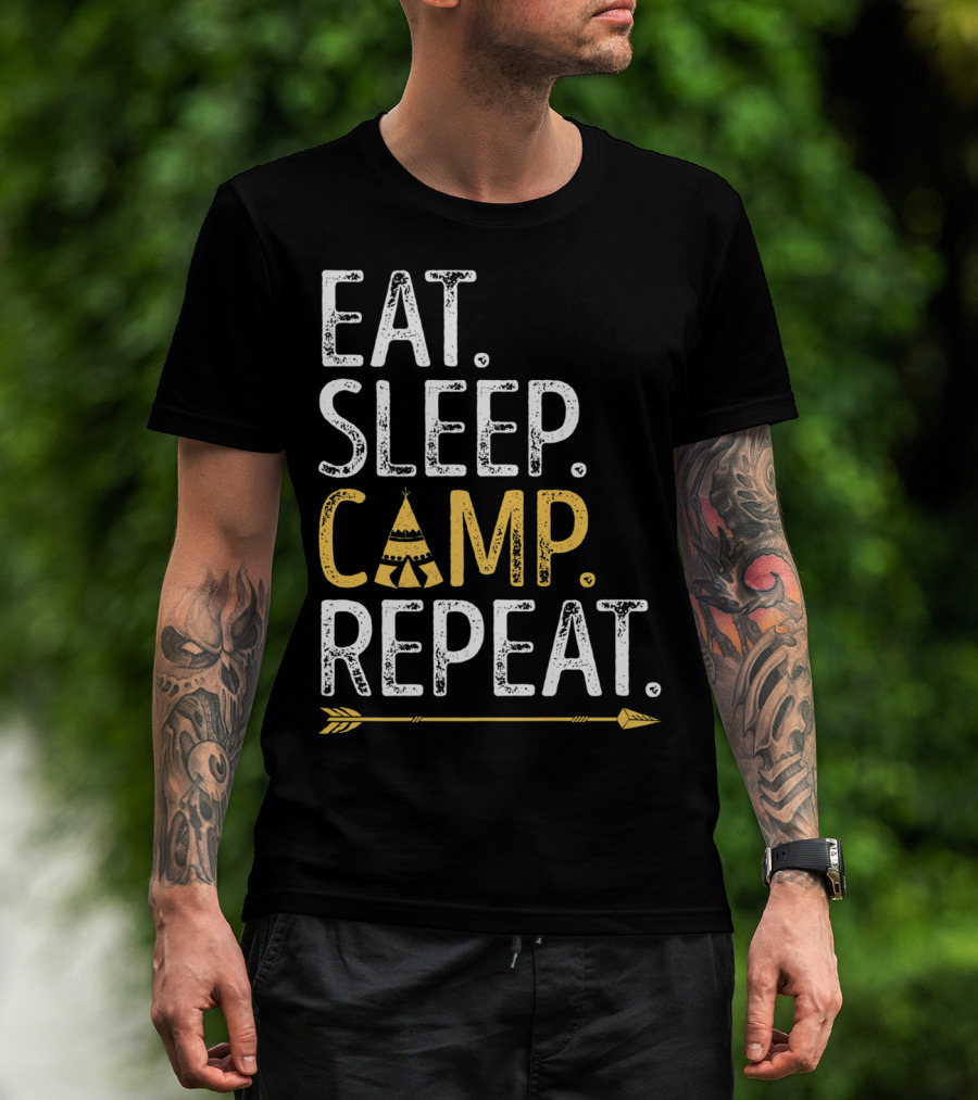 Eat Sleep Camp Repeat Camping Camper Tent Arrow T-Shirt
