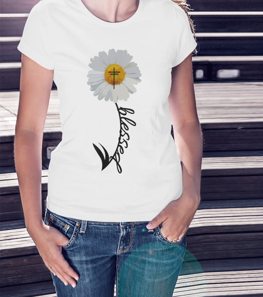 Blessed Cross Christian Religious Daisy Trendy T-Shirt