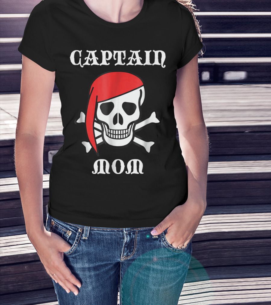 Captain Mom Skull Crossbones Red Bandana T-Shirt