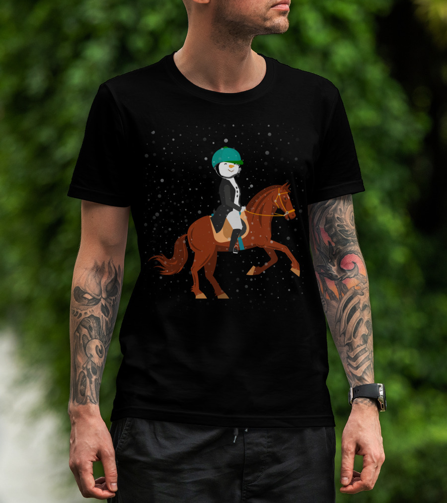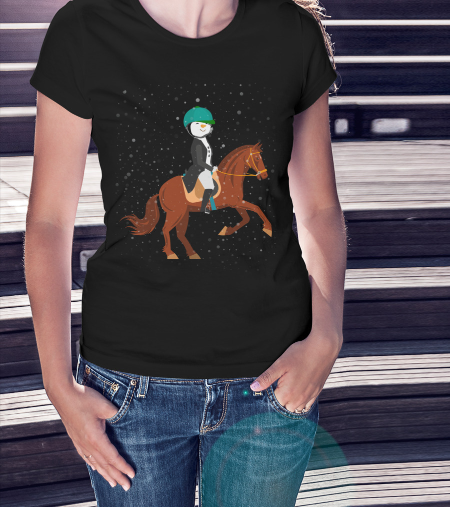 Funny Snowman Horse Riding In Winter Wonderland T-Shirt