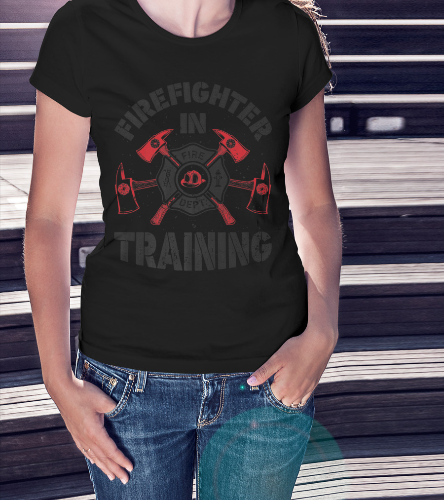 Firefighter In Training Fireman Fire Dept Axes Helmet Badge T-Shirt
