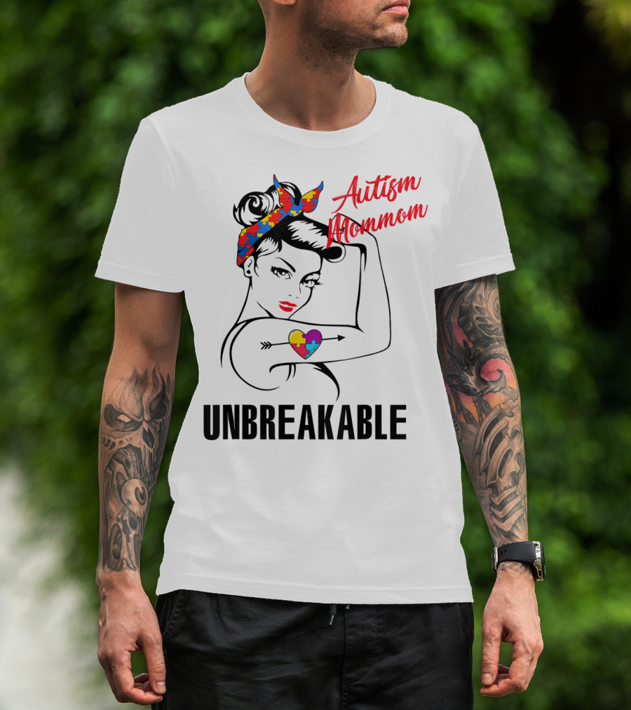 Autism Mommom Unbreakable Heart Puzzle Autism Awareness T-Shirt