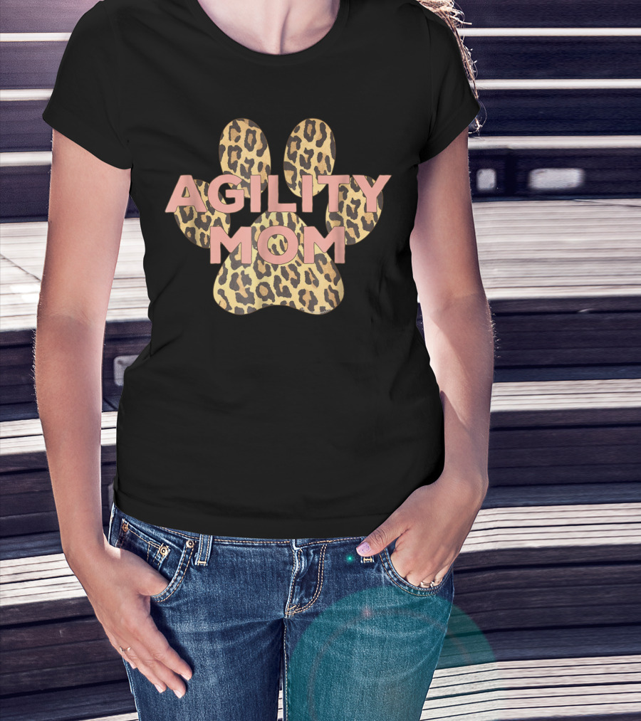 Agility Mom Leopard Print Dog Paw Pink Cute Cheetah T-Shirt