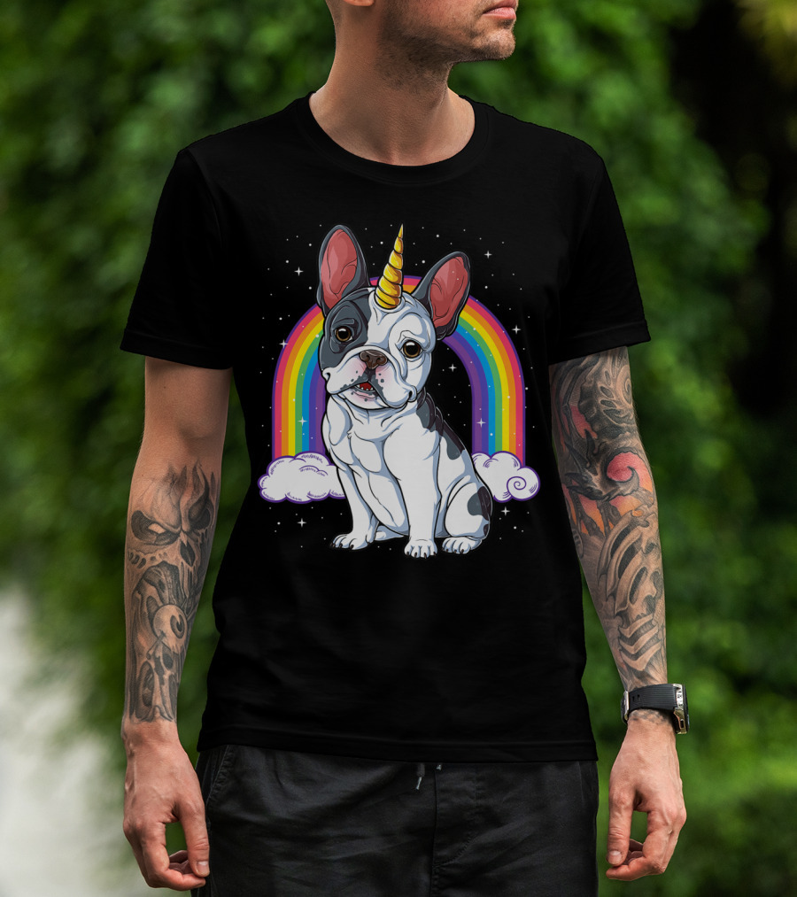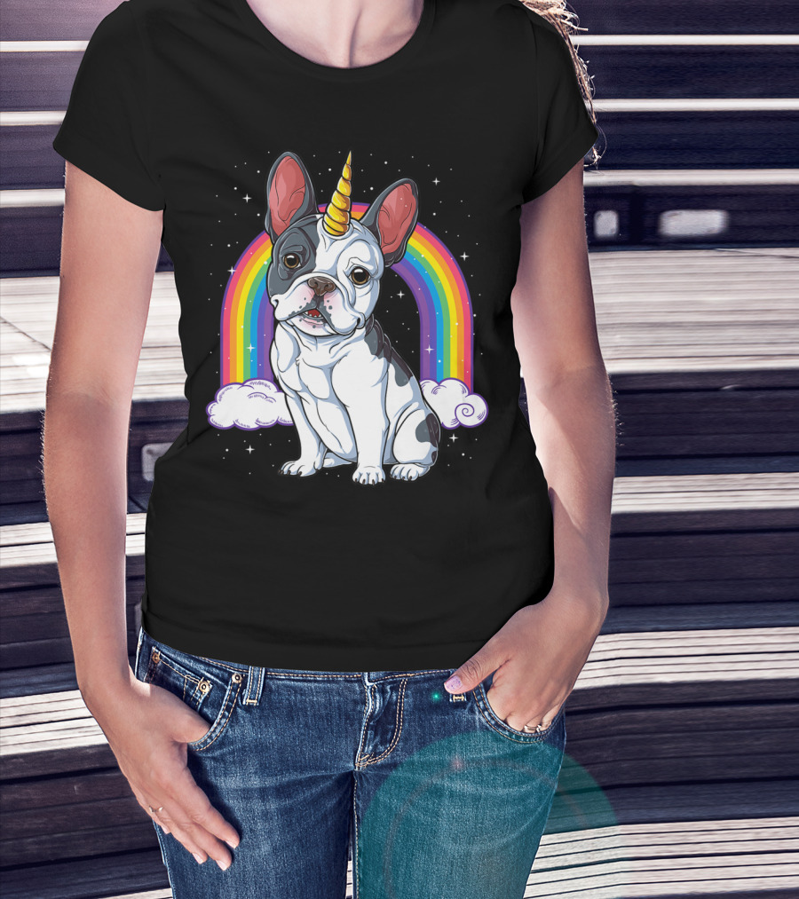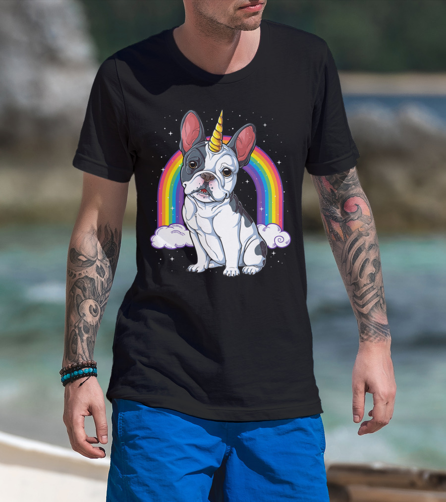 French Bulldog Unicorn Rainbow Space Galaxy Kids T-Shirt