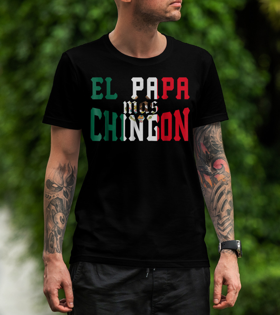 EL PAPA MAS CHINGON MEXICAN FLAG COLORS FUNNY MEXICAN DAD T-Shirt