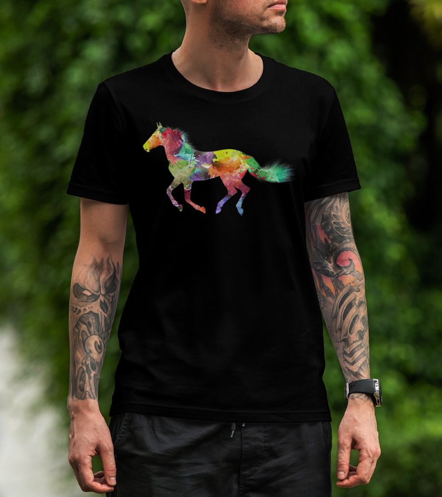 Galloping Colorful Horse Painting Horseback Riding T-Shirt
