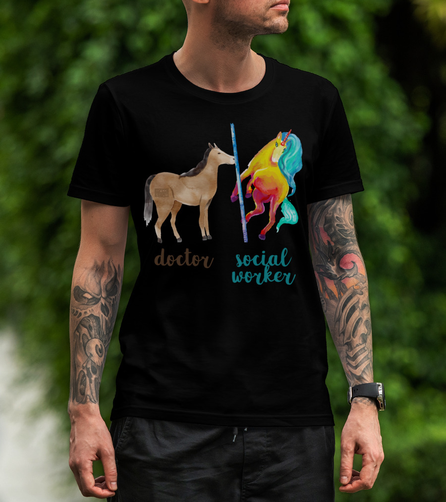 Doctor Horse And Social Worker Unicorn With Pole T-Shirt