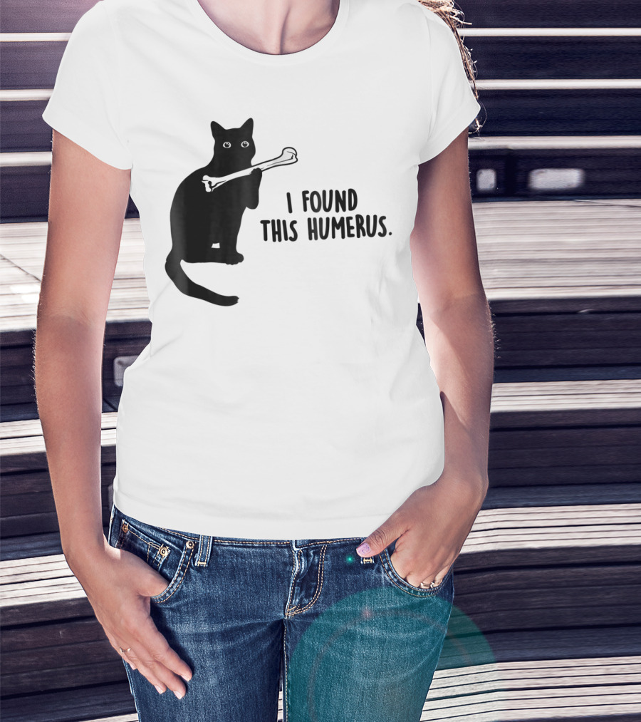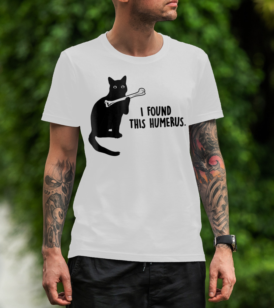 I Found This Humerus Black Cat Holding Bone Humor T-Shirt
