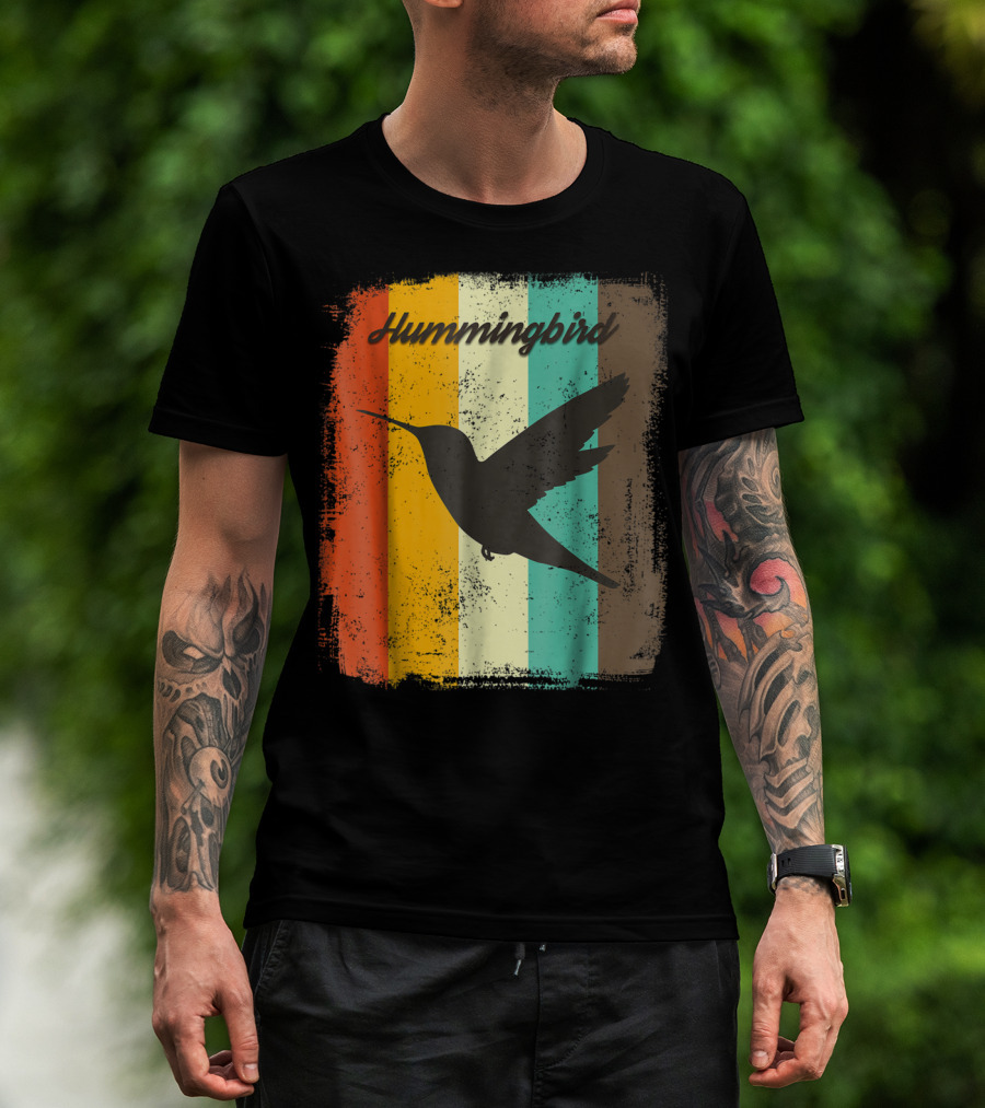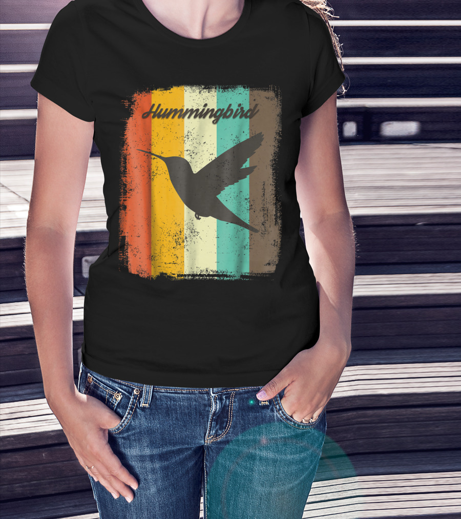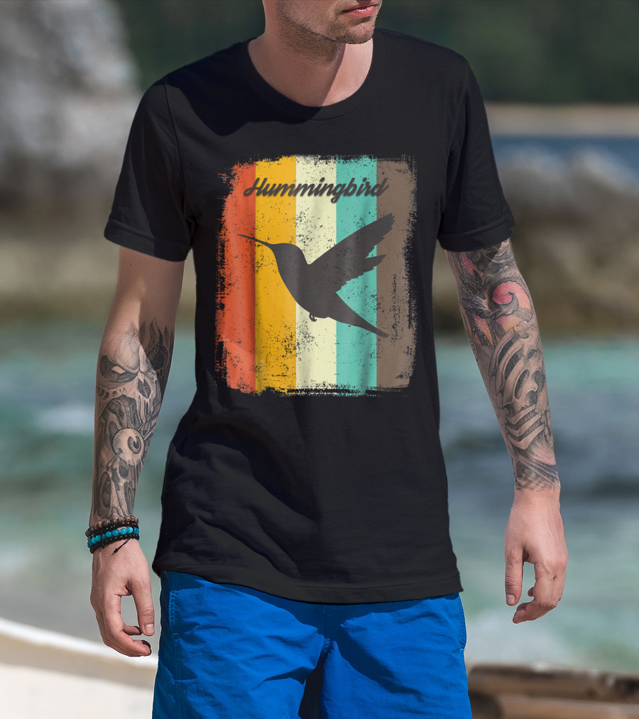 Hummingbird 70s Vintage Bird Lover Retro Stripes T-Shirt