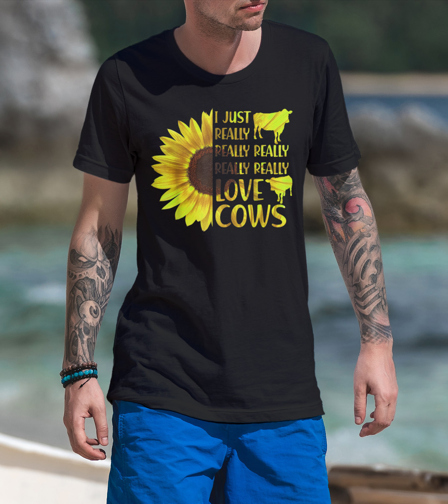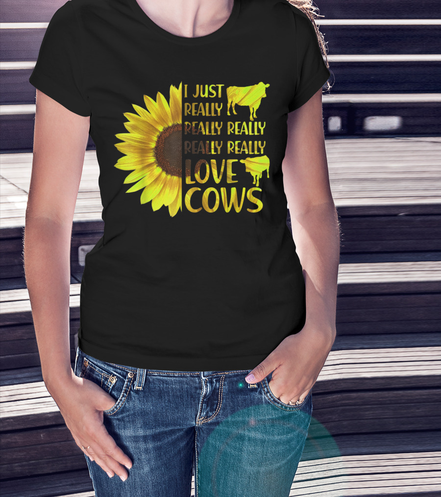 I Just Really Really Really Really Love Cows Sunflower Hippie T-Shirt
