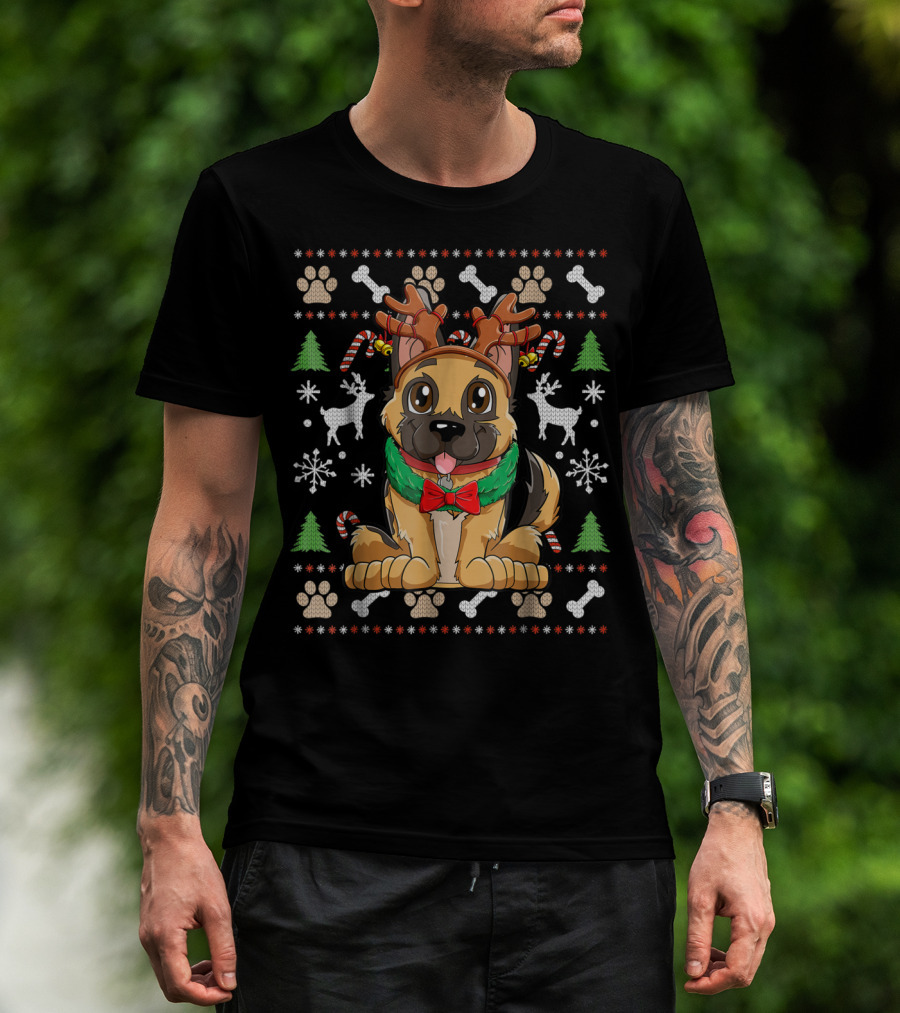 German Shepherd Dog With Reindeer Antlers Christmas Holiday T-Shirt