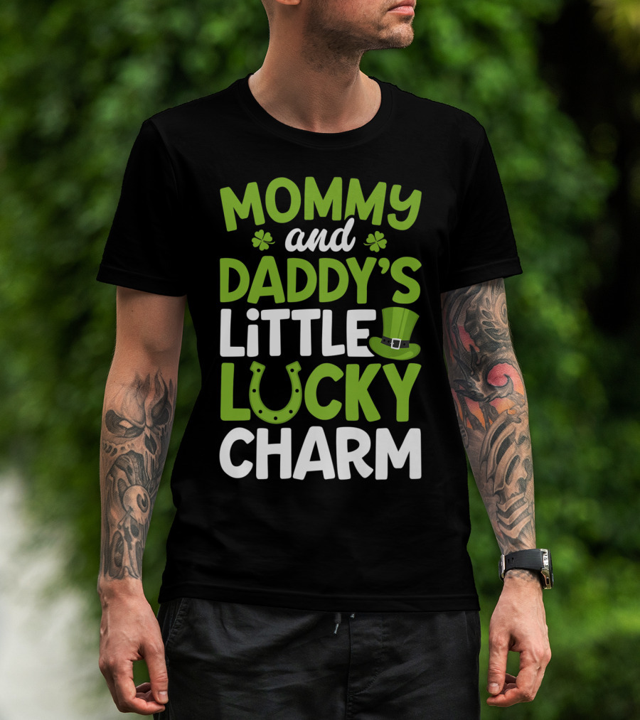 Mommy And Daddy's Little Lucky Charm St. Patrick's Day Clovers Horseshoe Hat T-Shirt