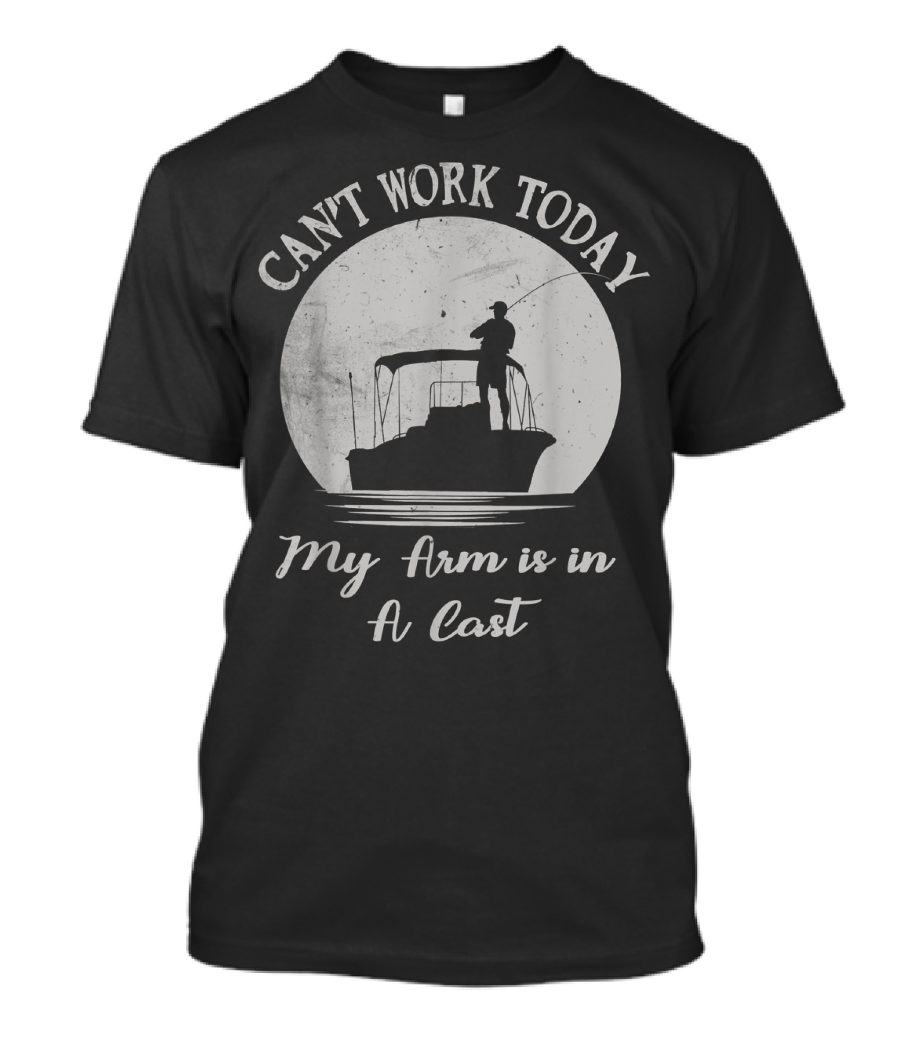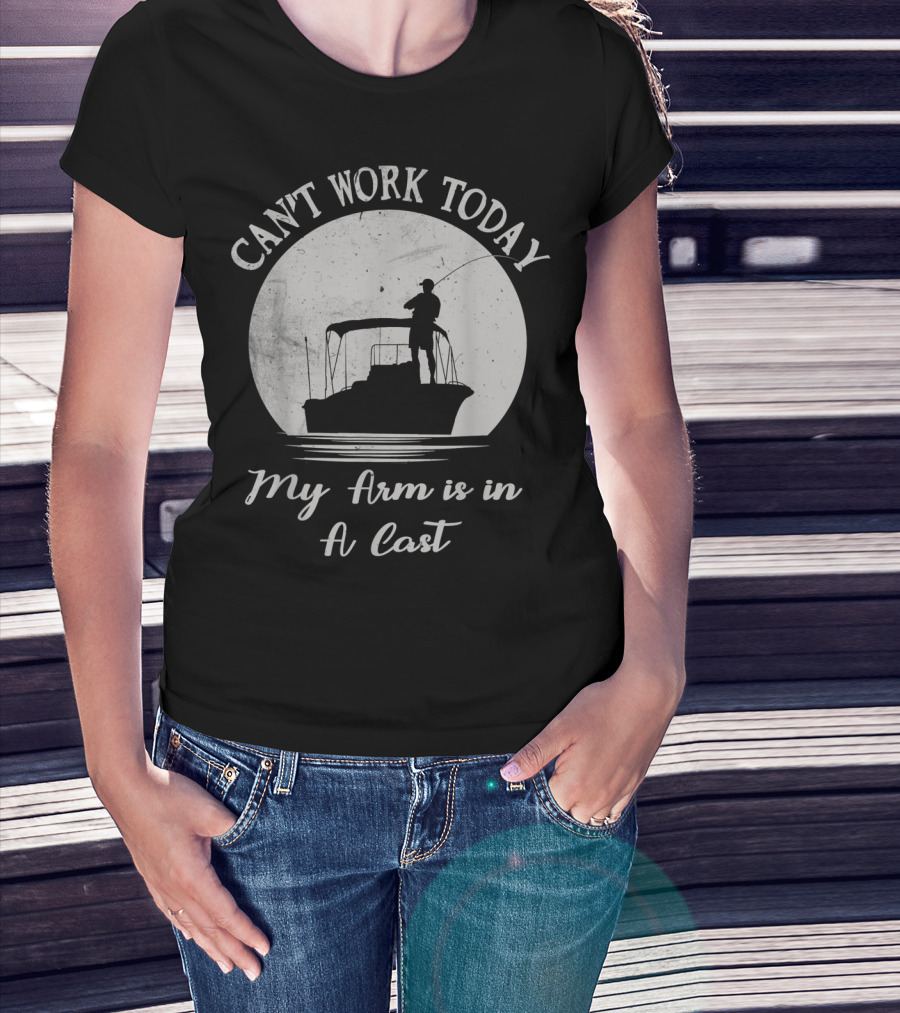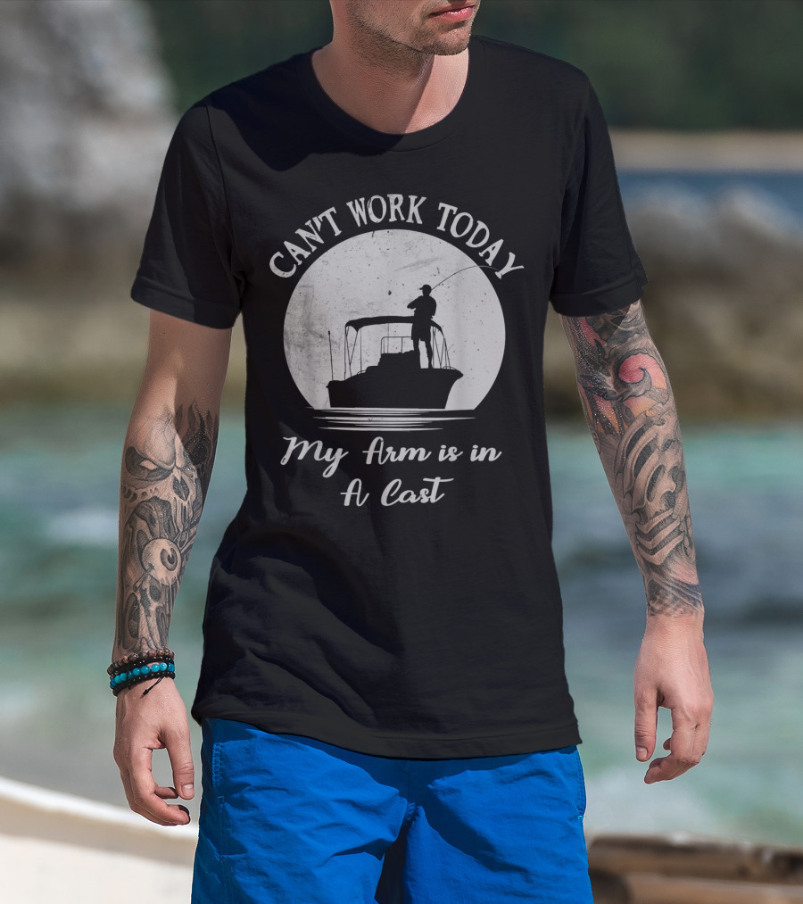 Can't Work Today My Arm Is In A Cast Funny Bass Fishing Fisherman Lake And Camping T-Shirt