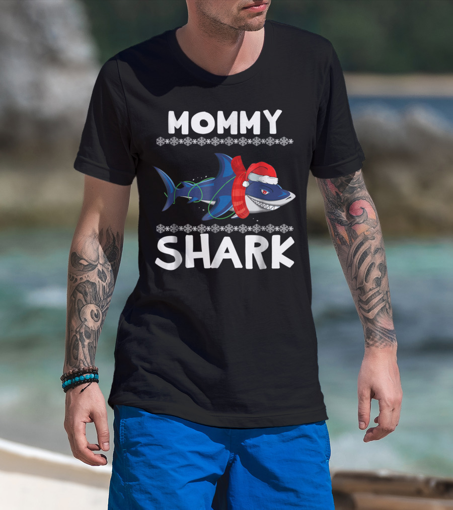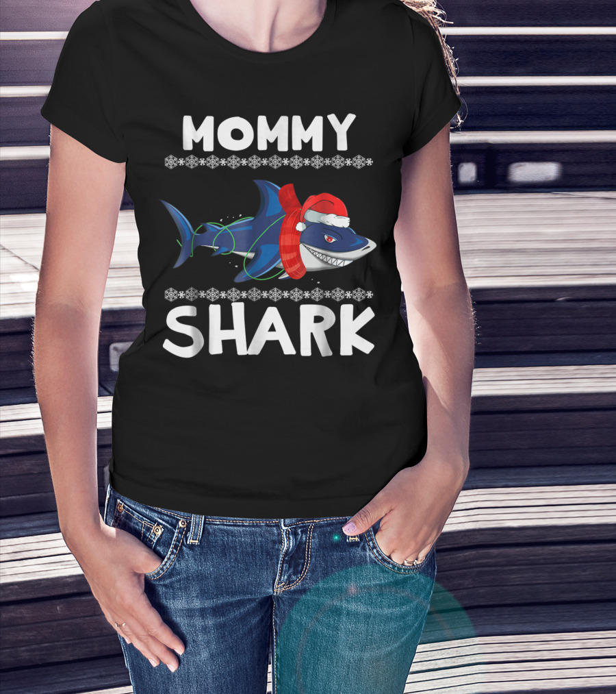 The Mommy Shark Christmas Family with Santa Hat and Snowflakes T-shirt is designed for everyday wear and a consistent fit. Fabric is pre-shrunk ring-spun cotton with durable stitching. See the size chart below for exact measurements.