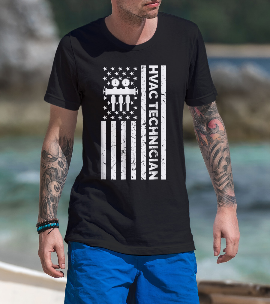 The American Flag HVAC Technician T-shirt is designed for everyday wear and a consistent fit. Fabric is pre-shrunk ring-spun cotton with durable stitching. See the size chart below for exact measurements.