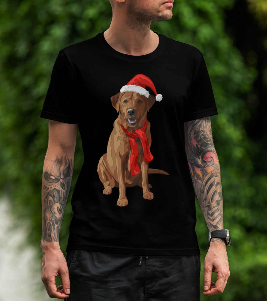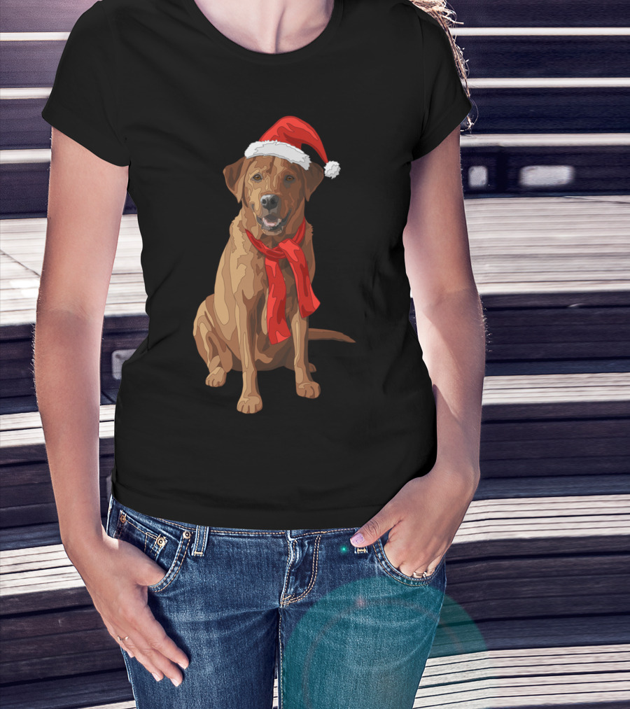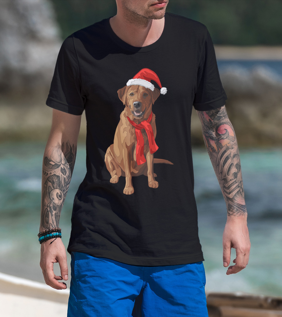 Red Labrador Retriever Dog With Christmas Santa Hat And Scarf T-Shirt