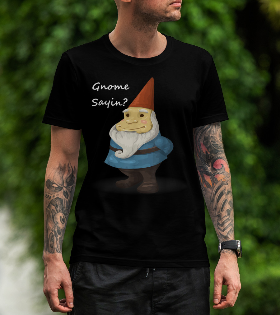 Gnome Sayin Funny Garden Gnome With Red Hat And Blue T-Shirt