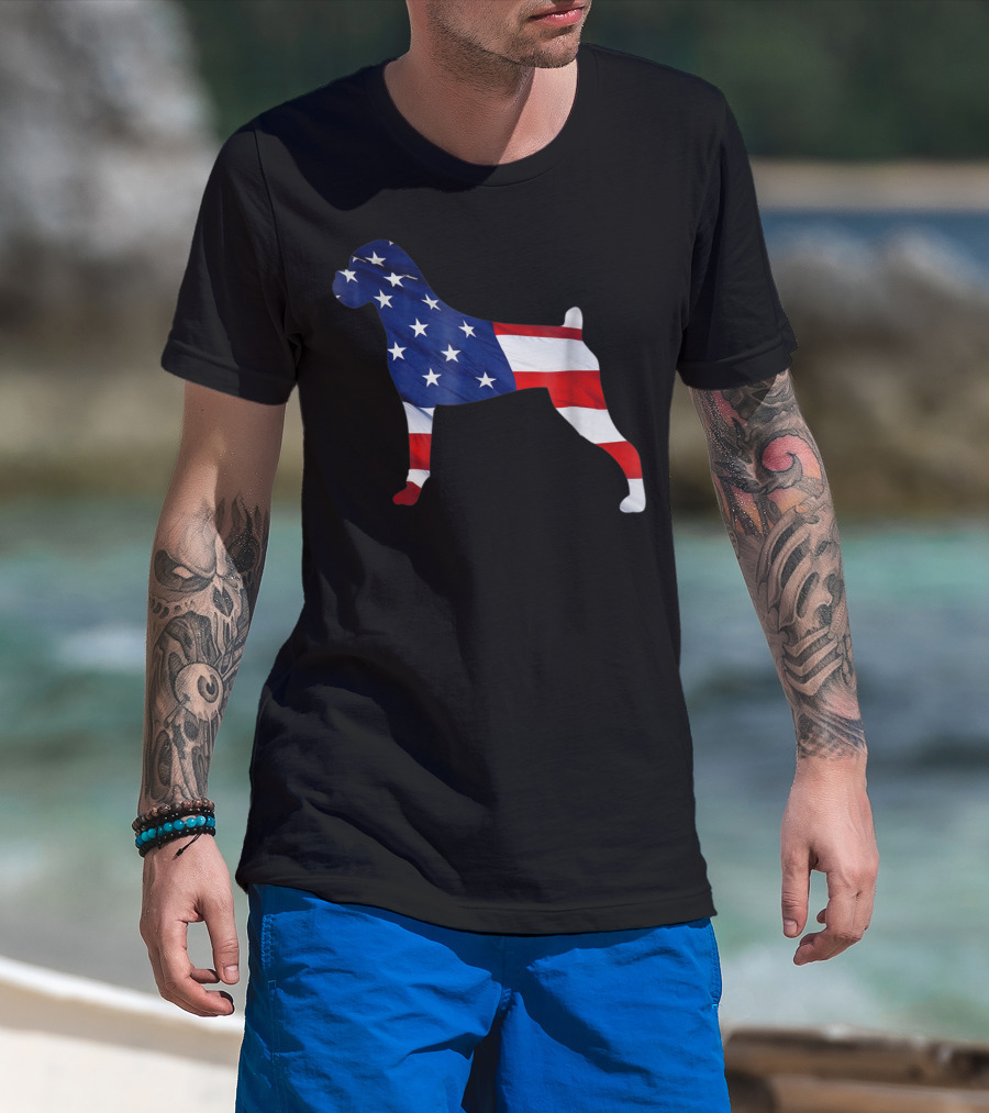 The American Flag Boxer Dog Novelty T-shirt is designed for everyday wear and a consistent fit. Fabric is pre-shrunk ring-spun cotton with durable stitching. See the size chart below for exact measurements.
