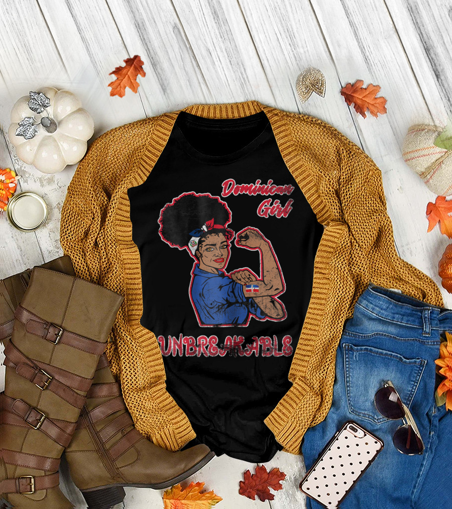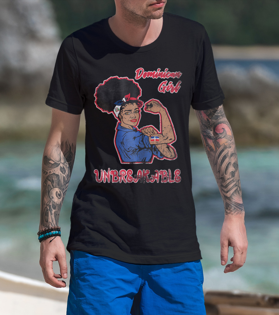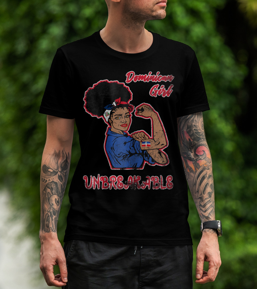 Dominican Girl Unbreakable With Flag And Feminist Symbolism T-Shirt