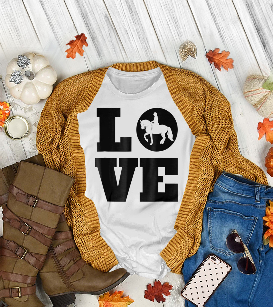 The LOVE Dressage Piaffe Horse For Horse Lover T-shirt is designed for everyday wear and a consistent fit. Fabric is pre-shrunk ring-spun cotton with durable stitching. See the size chart below for exact measurements.