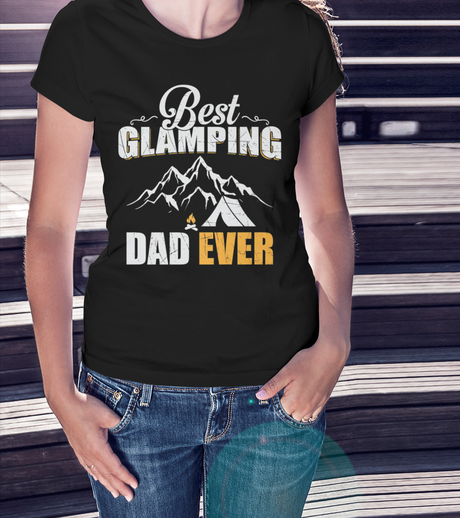 Best Glamping Dad Ever Mountains Tent Campfire T-Shirt