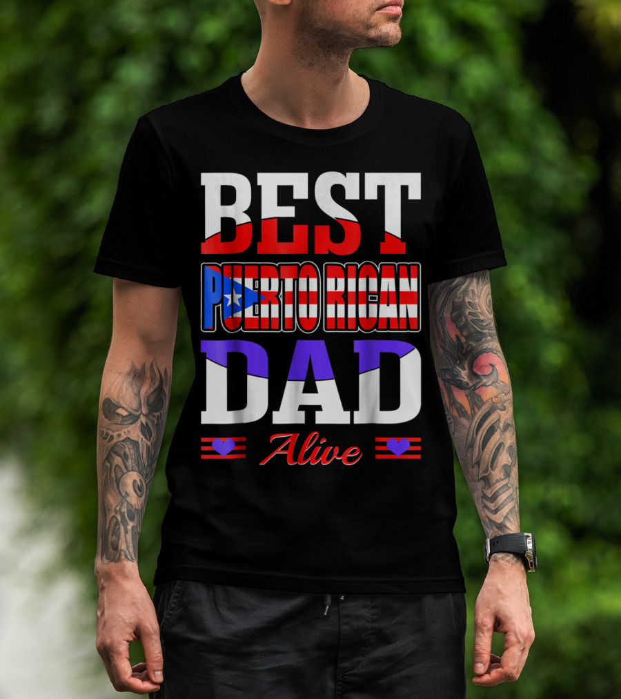 The BEST PUERTO RICAN DAD ALIVE USA FLAG STYLE WITH HEARTS T-shirt is designed for everyday wear and a consistent fit. Fabric is pre-shrunk ring-spun cotton with durable stitching. See the size chart below for exact measurements.