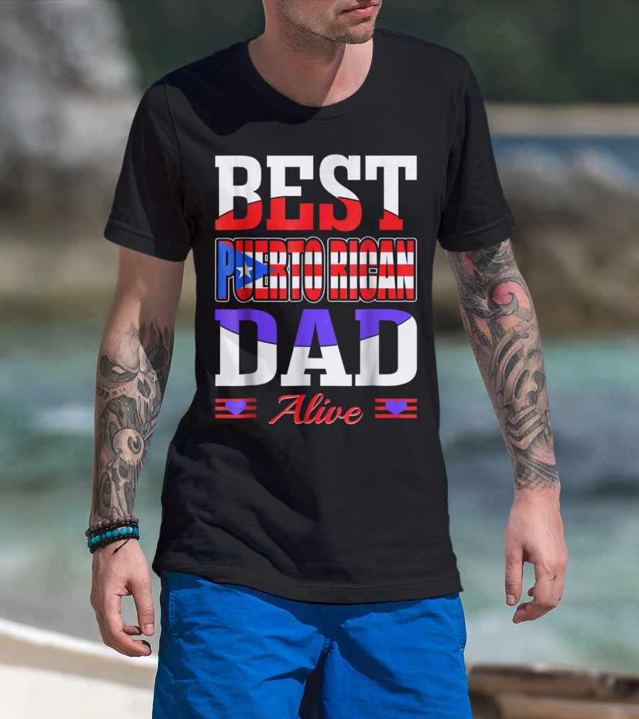 BEST PUERTO RICAN DAD ALIVE USA FLAG STYLE WITH HEARTS T-Shirt