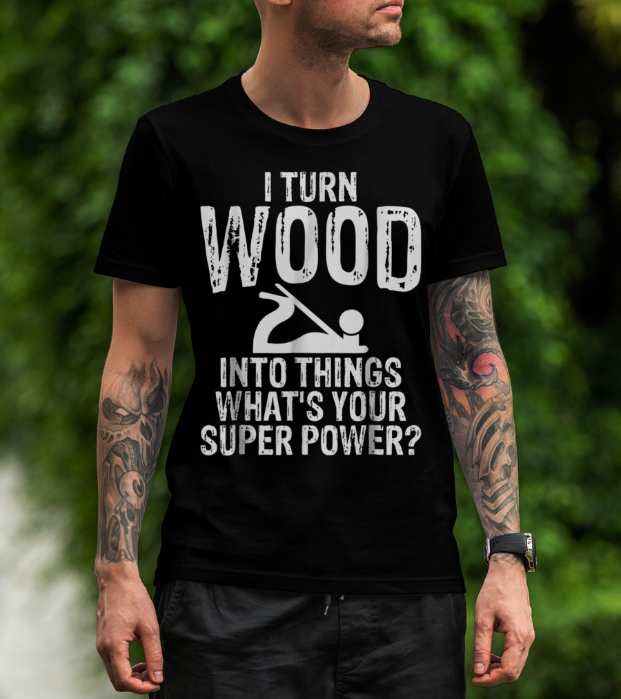 The I Turn Wood Into Things What's Your Super Power? Carpenters Grandpa T-shirt is designed for everyday wear and a consistent fit. Fabric is pre-shrunk ring-spun cotton with durable stitching. See the size chart below for exact measurements.