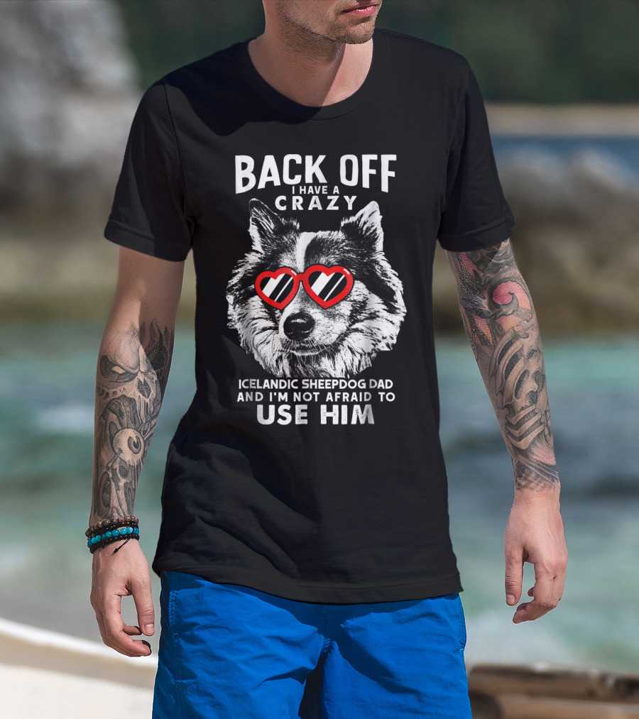 Back Off I Have A Crazy Icelandic Sheepdog Dad And I'm Not Afraid To Use Him T-Shirt