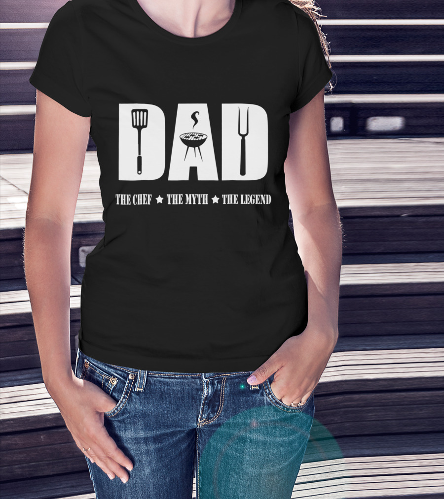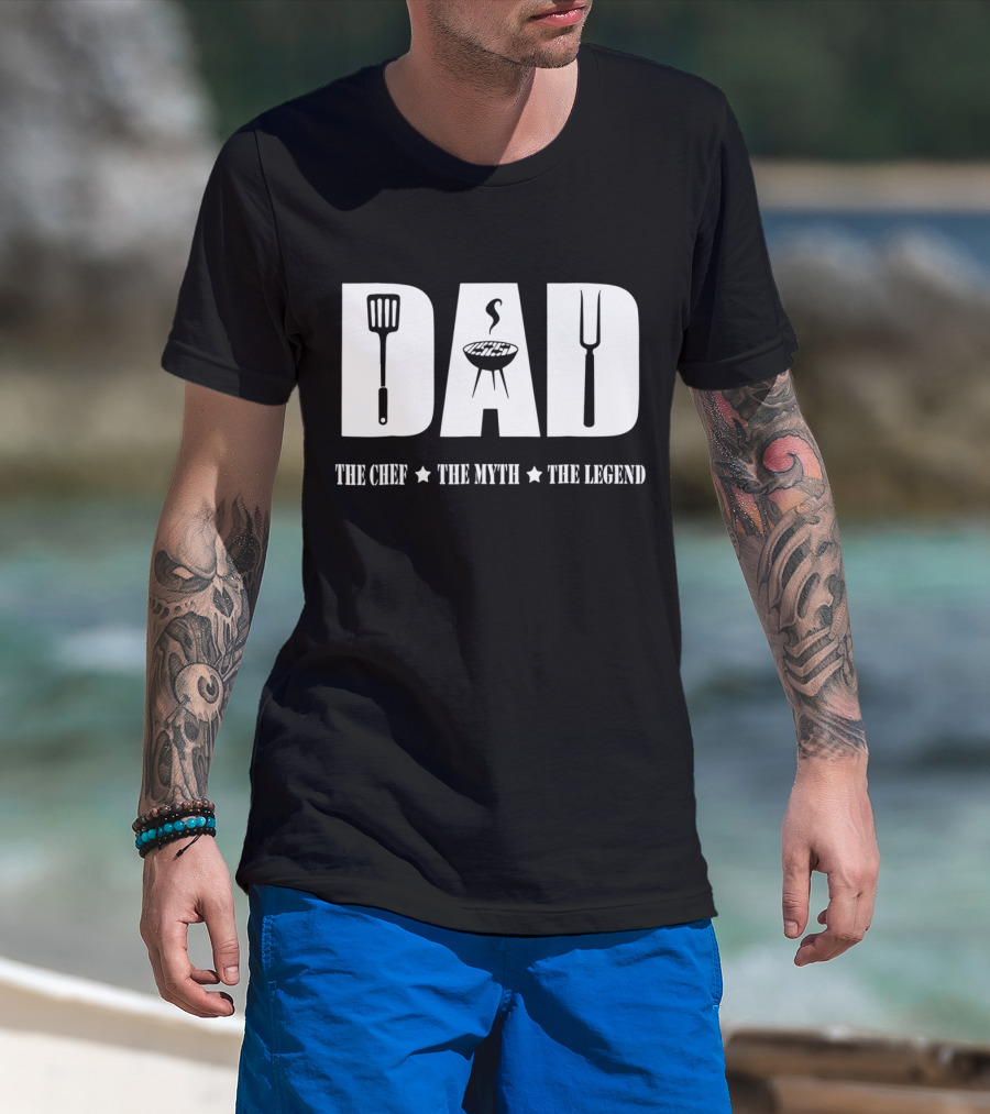 The Dad the Chef the Myth the Legend T-shirt is designed for everyday wear and a consistent fit. Fabric is pre-shrunk ring-spun cotton with durable stitching. See the size chart below for exact measurements.
