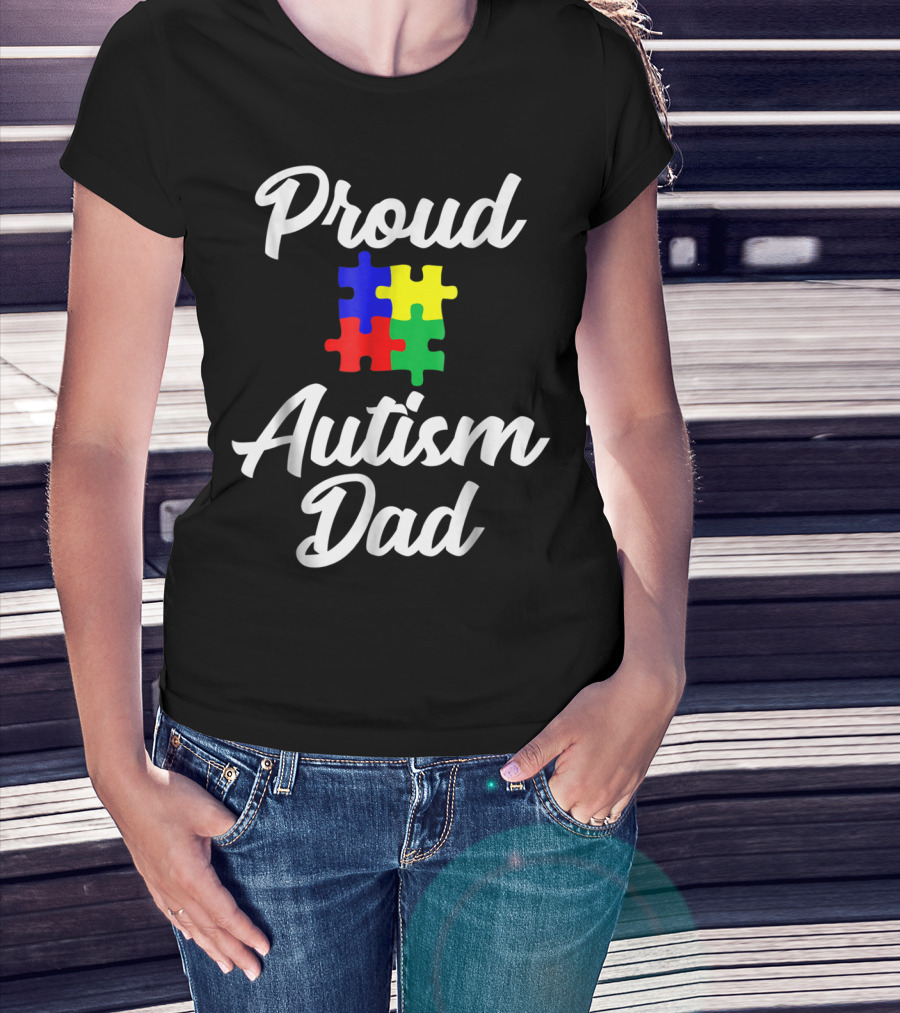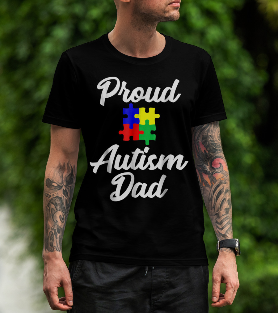 Proud Autism Dad Puzzle Support Men Grandpa Papa T-Shirt