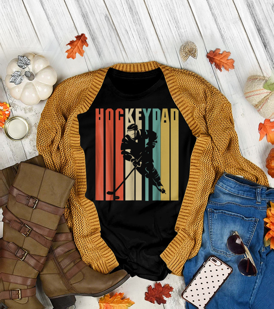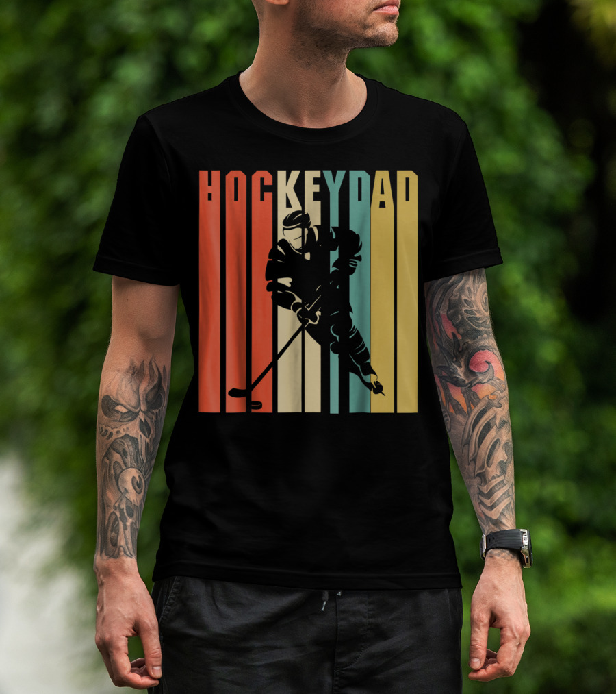Classic Vintage Hockey Dad Player Silhouette Retro Stripes T-Shirt