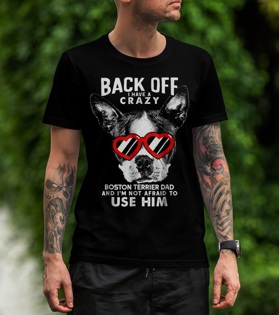 BACK OFF I HAVE A CRAZY BOSTON TERRIER DAD AND I'M NOT AFRAID TO USE HIM T-Shirt