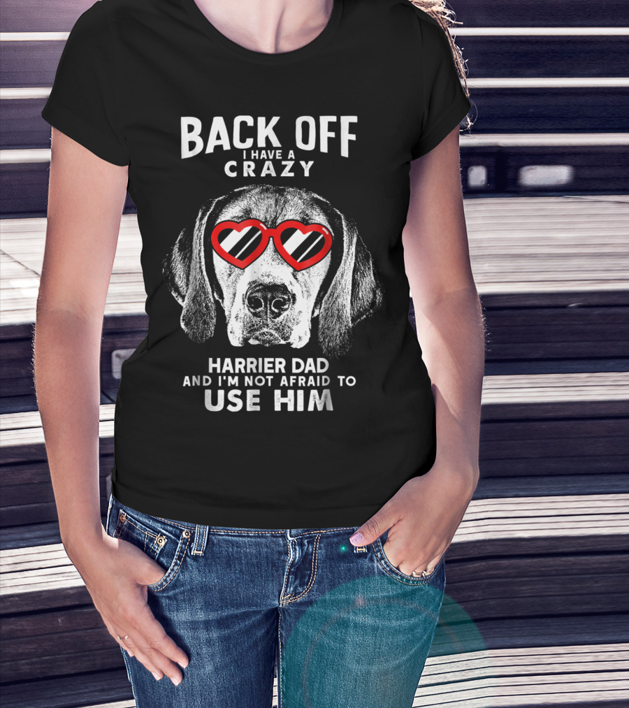 The BACK OFF I HAVE A CRAZY HARRIER DAD AND I'M NOT AFRAID TO USE HIM T-shirt is designed for everyday wear and a consistent fit. Fabric is pre-shrunk ring-spun cotton with durable stitching. See the size chart below for exact measurements.