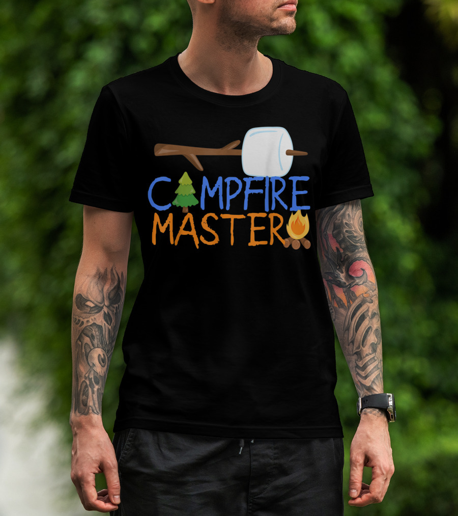 The Campfire Master Dad Camping S'Mores Bonfire85 T-shirt is designed for everyday wear and a consistent fit. Fabric is pre-shrunk ring-spun cotton with durable stitching. See the size chart below for exact measurements.