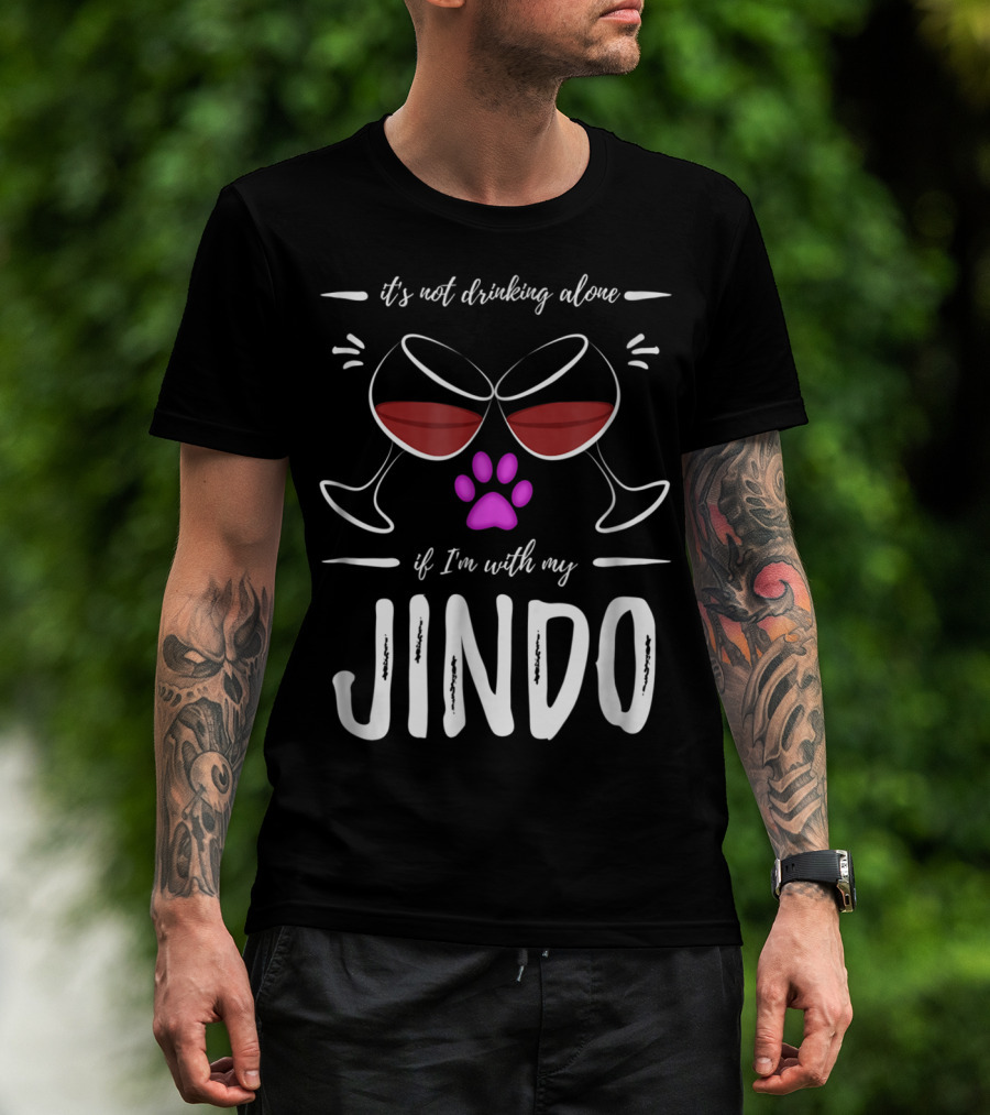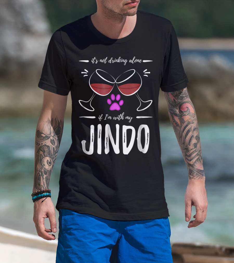 It's Not Drinking Alone If I'm With My Jindo Wine Lover Dog Paw T-Shirt