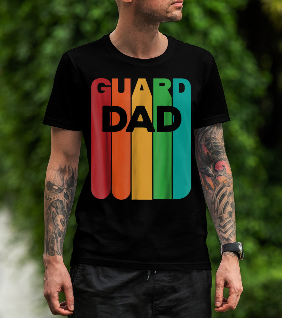 The Color Guard Dad Rainbow Stripes T-shirt is designed for everyday wear and a consistent fit. Fabric is pre-shrunk ring-spun cotton with durable stitching. See the size chart below for exact measurements.