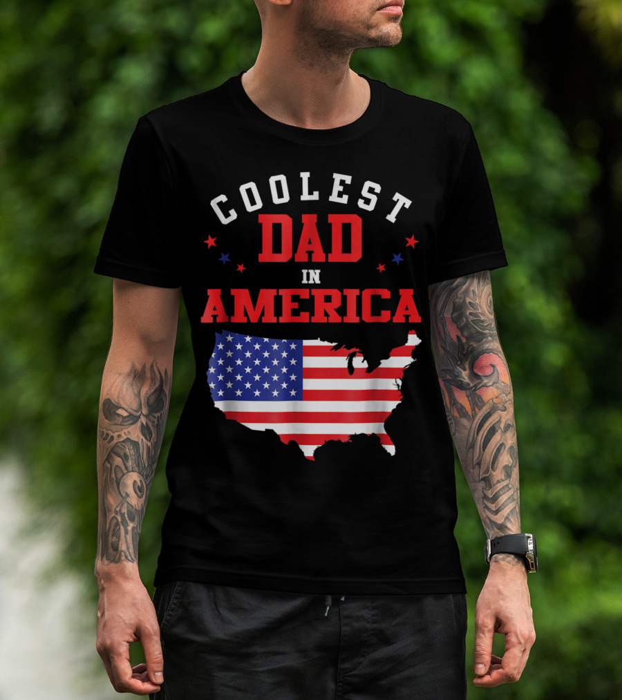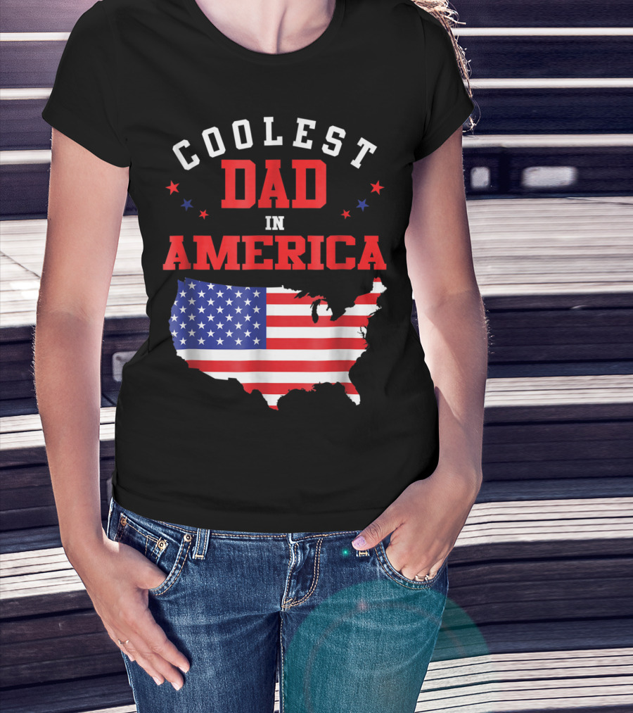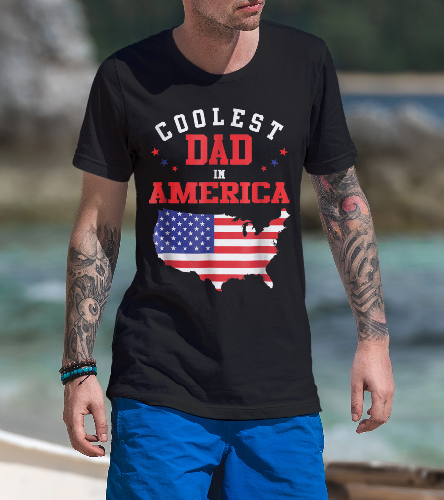 COOLEST DAD IN AMERICA USA FLAG MAP STARS T-Shirt