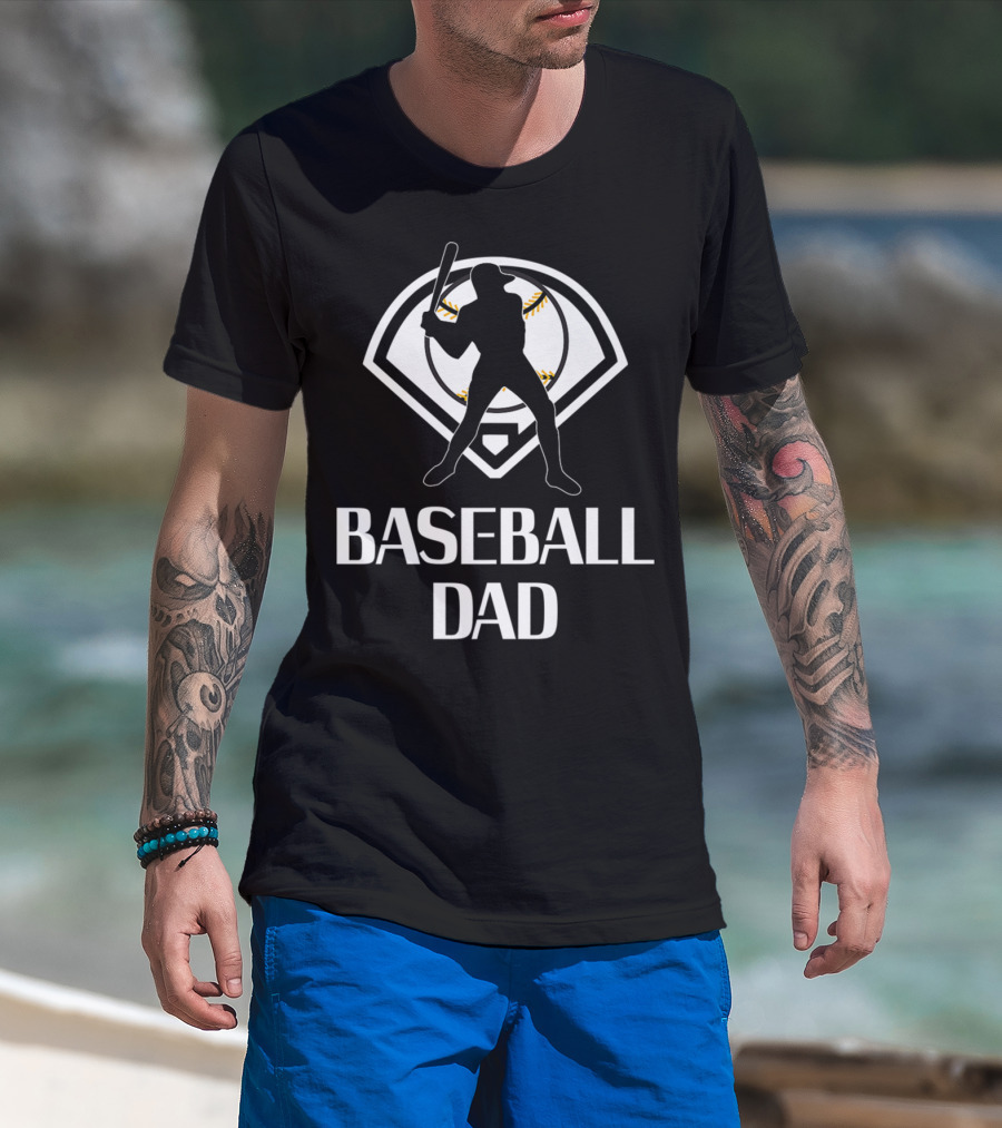 BASEBALL DAD BATTER SILHOUETTE WITH BASEBALL BACKDROP T-Shirt