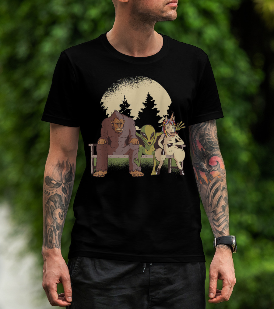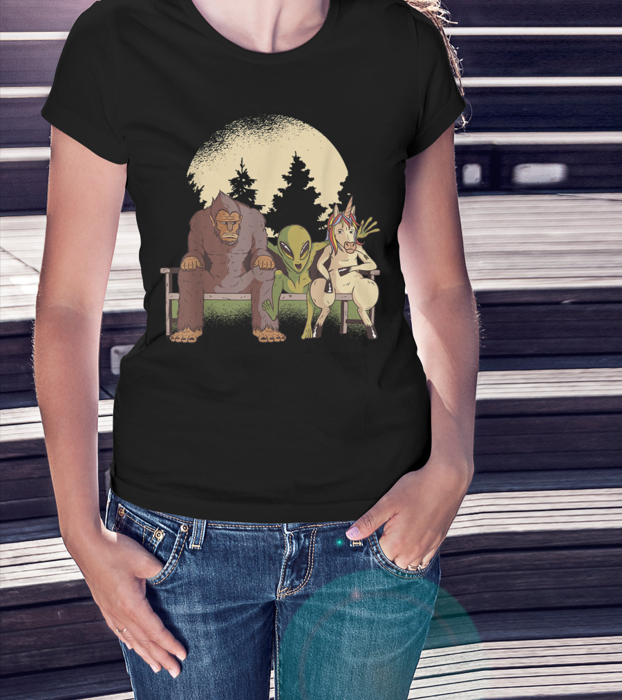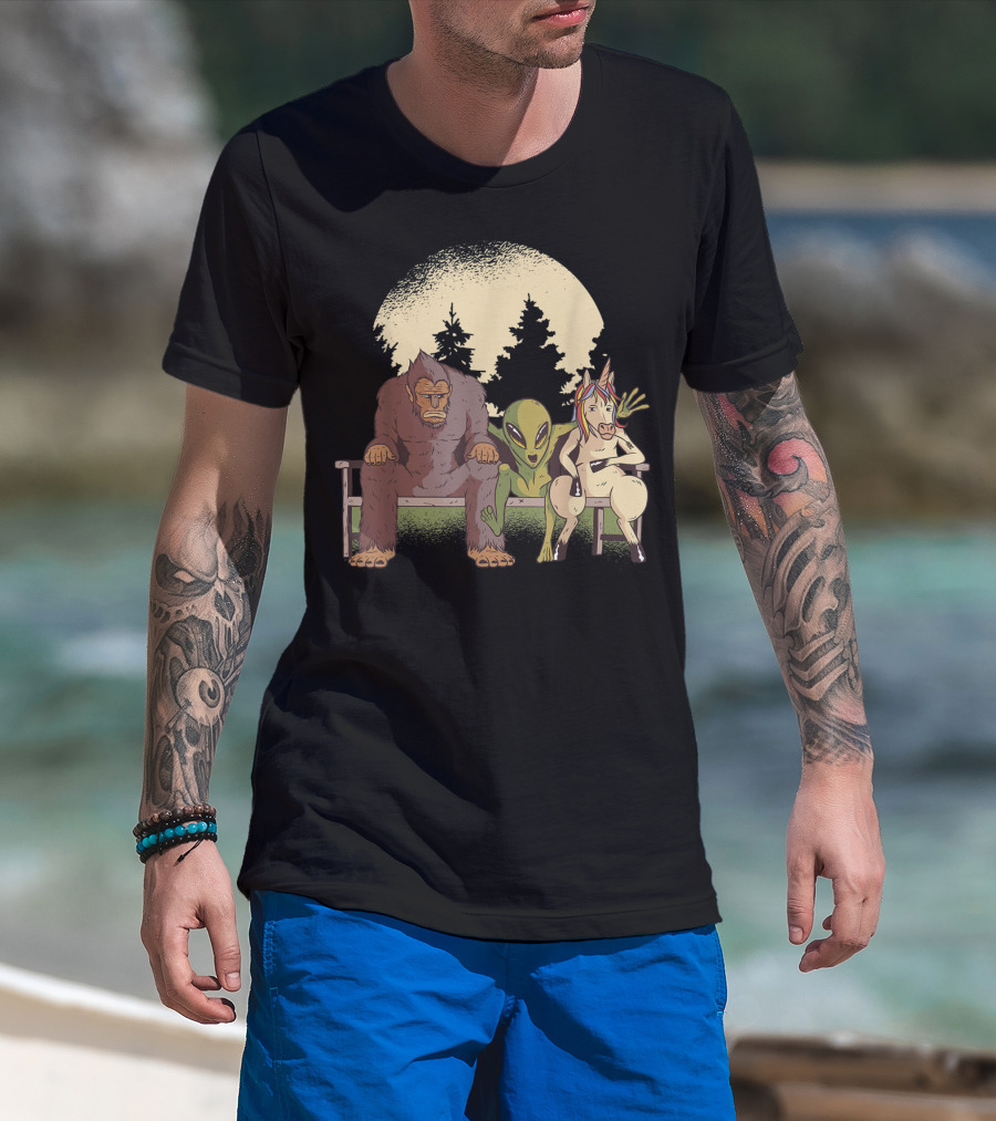 Creatures Monkey Alien Horse Forest Bench Scene T-Shirt