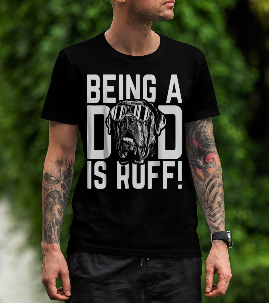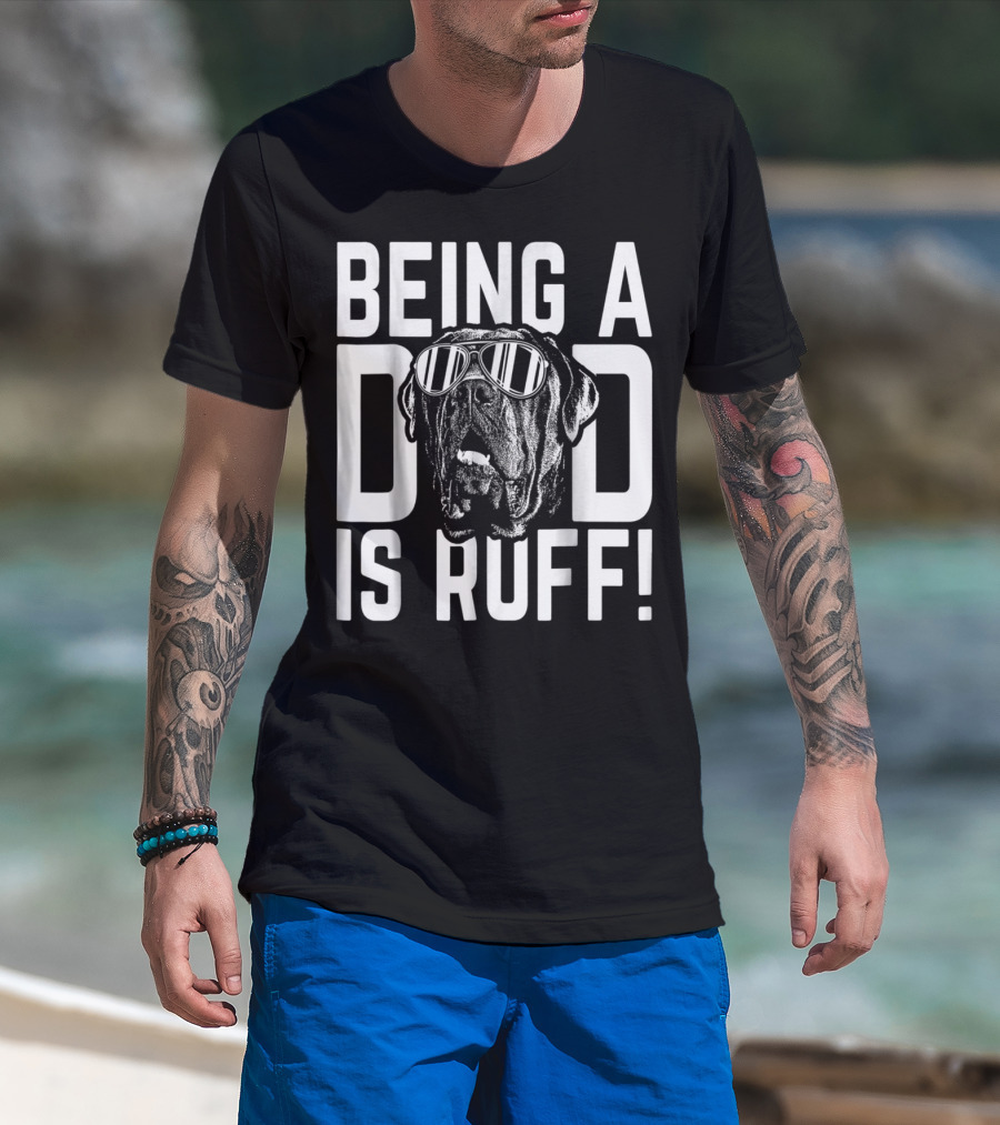 Being A Dad Is Ruff Funny Dog Wearing Sunglasses T-Shirt