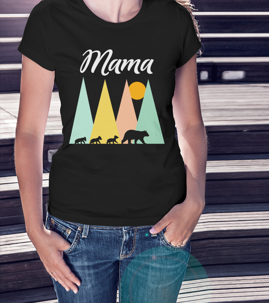 The Mama Bear with Three Cubs Camping in the Mountains T-shirt is designed for everyday wear and a consistent fit. Fabric is pre-shrunk ring-spun cotton with durable stitching. See the size chart below for exact measurements.