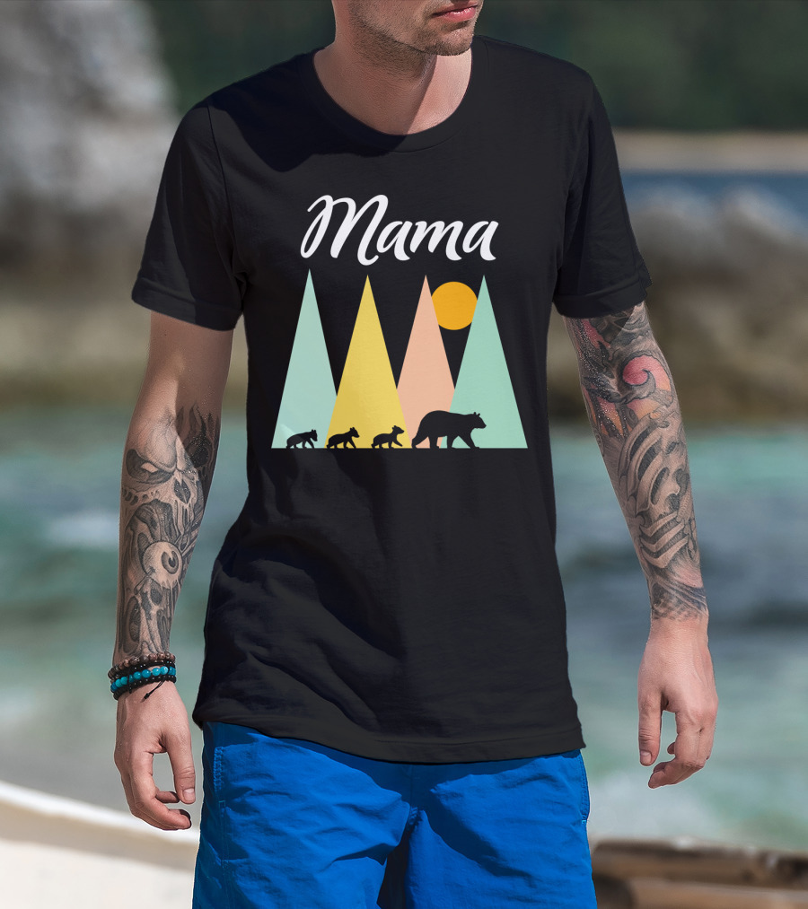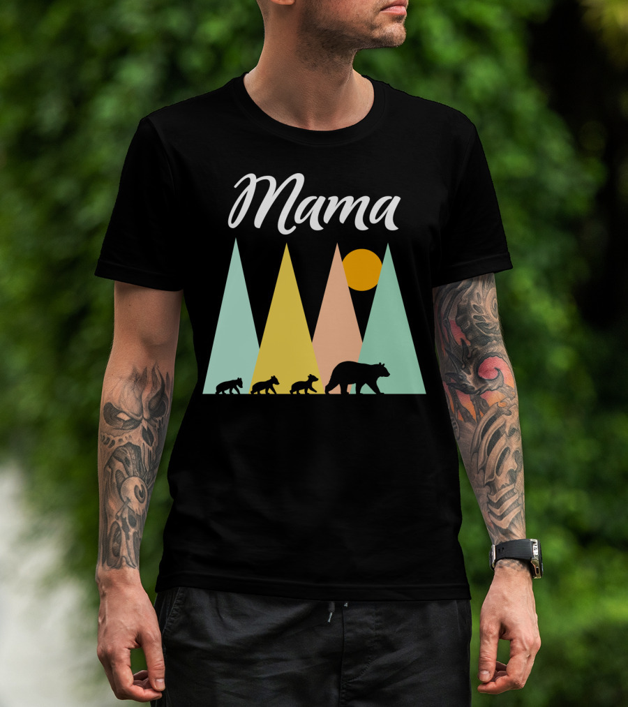 Mama Bear With Three Cubs Camping In The Mountains T-Shirt